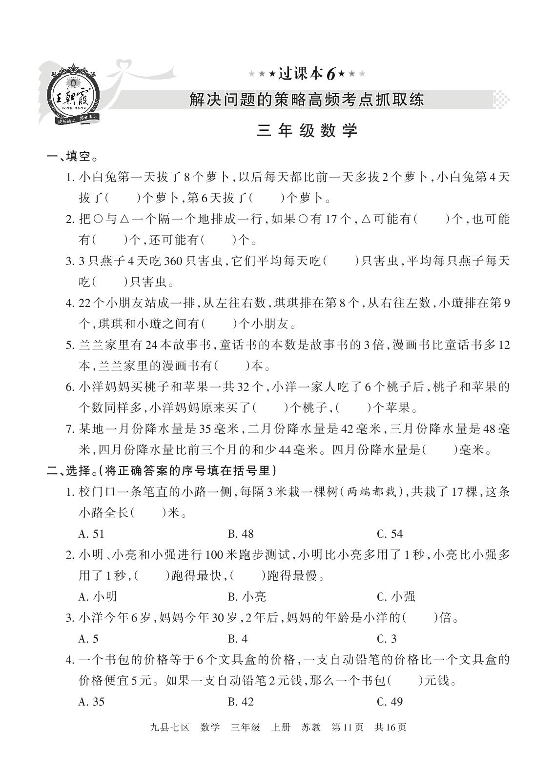 王朝霞期末过课本——解决问题的策略高频考点抓取练三年级上册数学(苏教版)_R211223144318464【6】