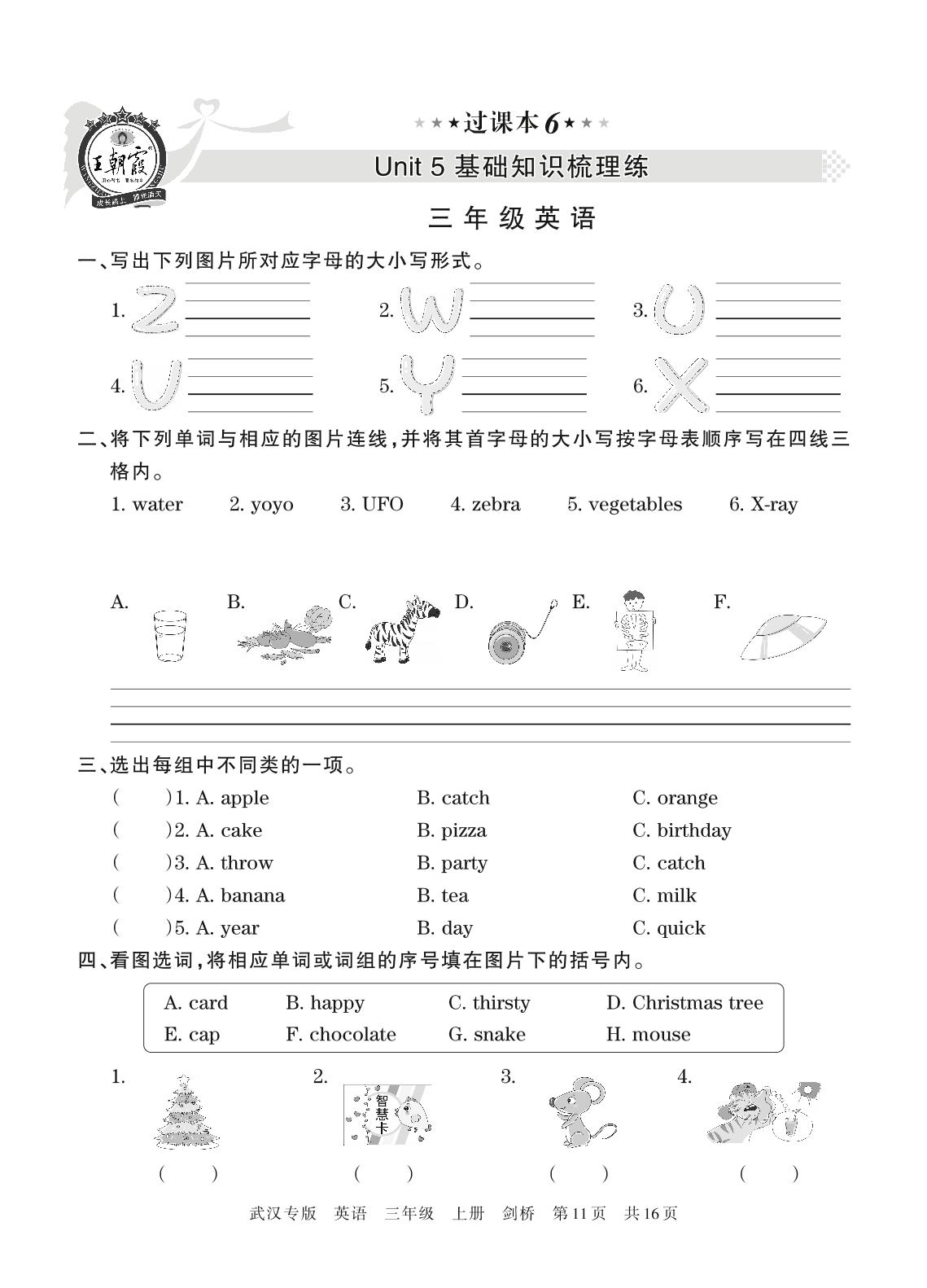 王朝霞期末过课本——Unit 5基础知识梳理练三年级上册英语(剑桥版)【6】