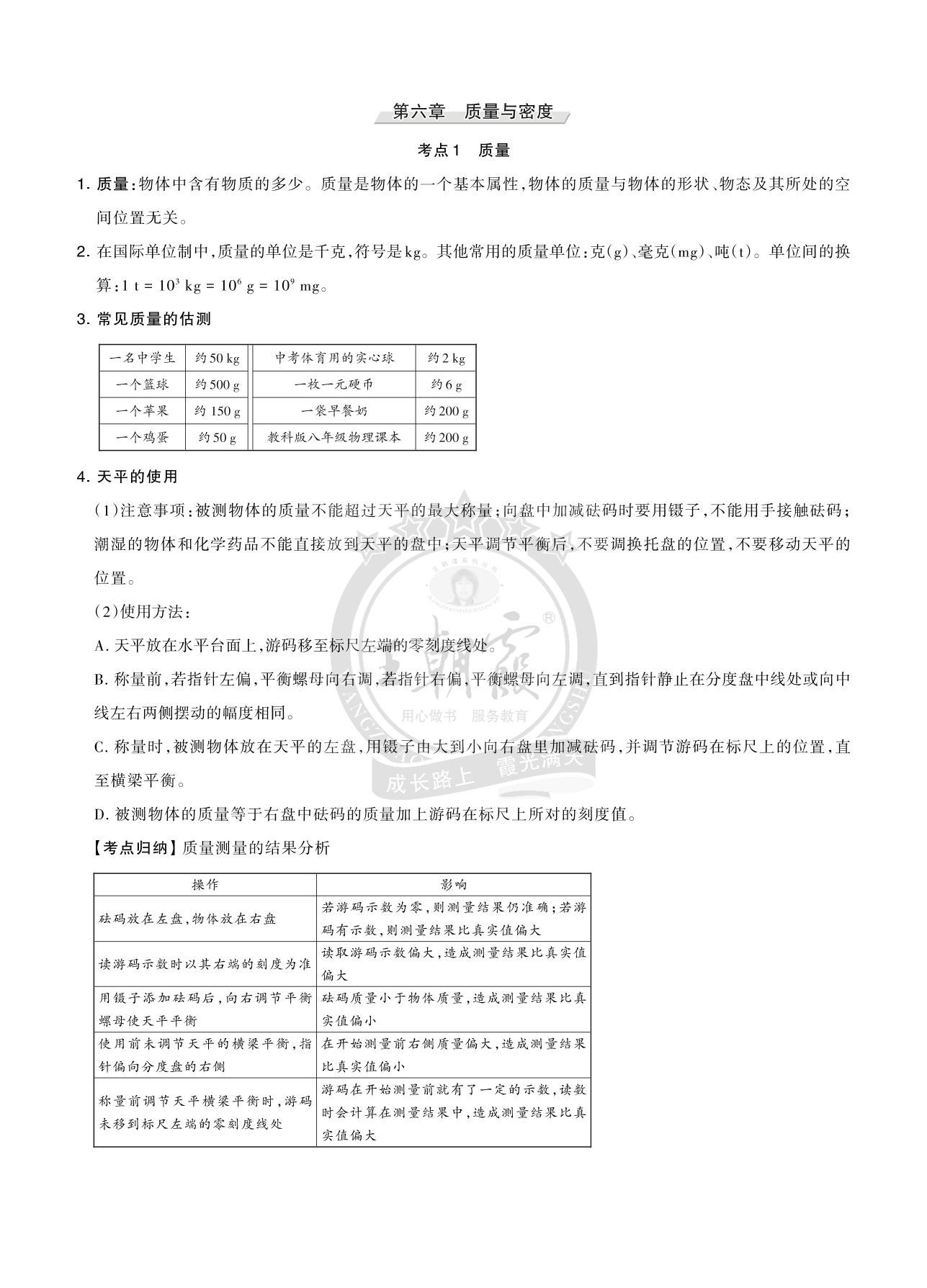 王朝霞期末知识梳理——第六章 质量与密度八年级上册物理(教科版)【6】