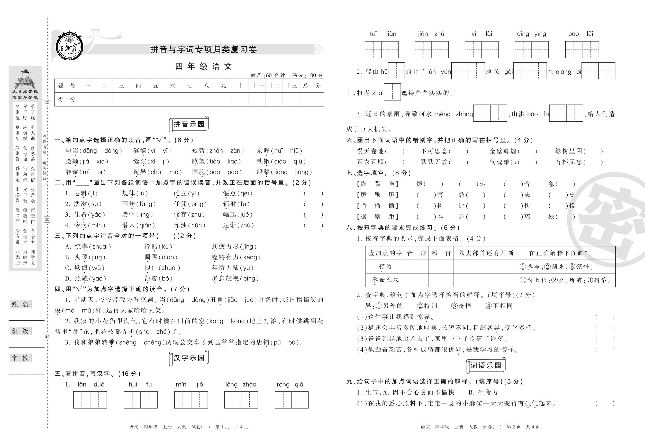 王朝霞期末专项卷四年级上册语文(人教版)_R210801213926【1】