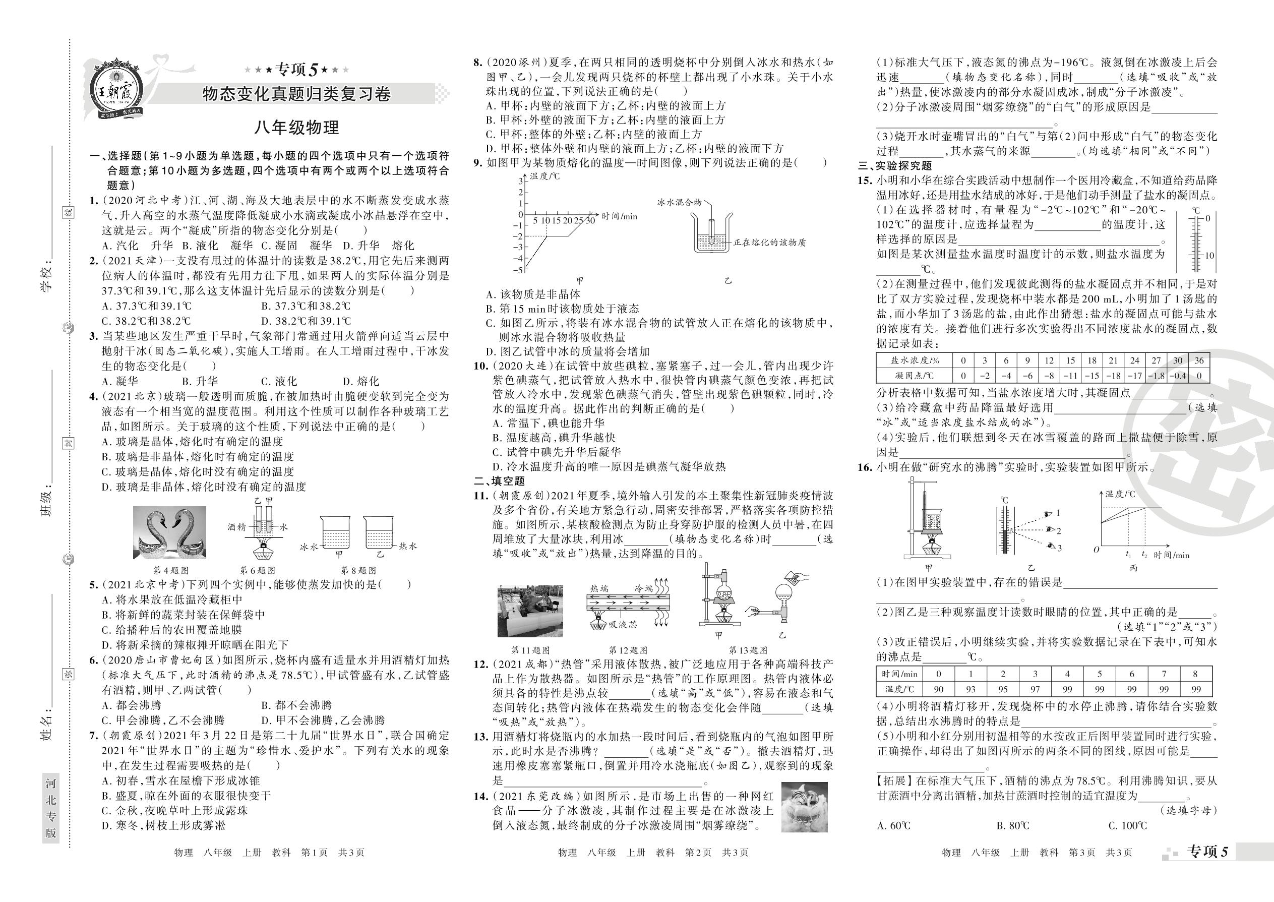 王朝霞期末专项卷——物态变化真题归类复习卷八年级上册物理(教科版)【5】