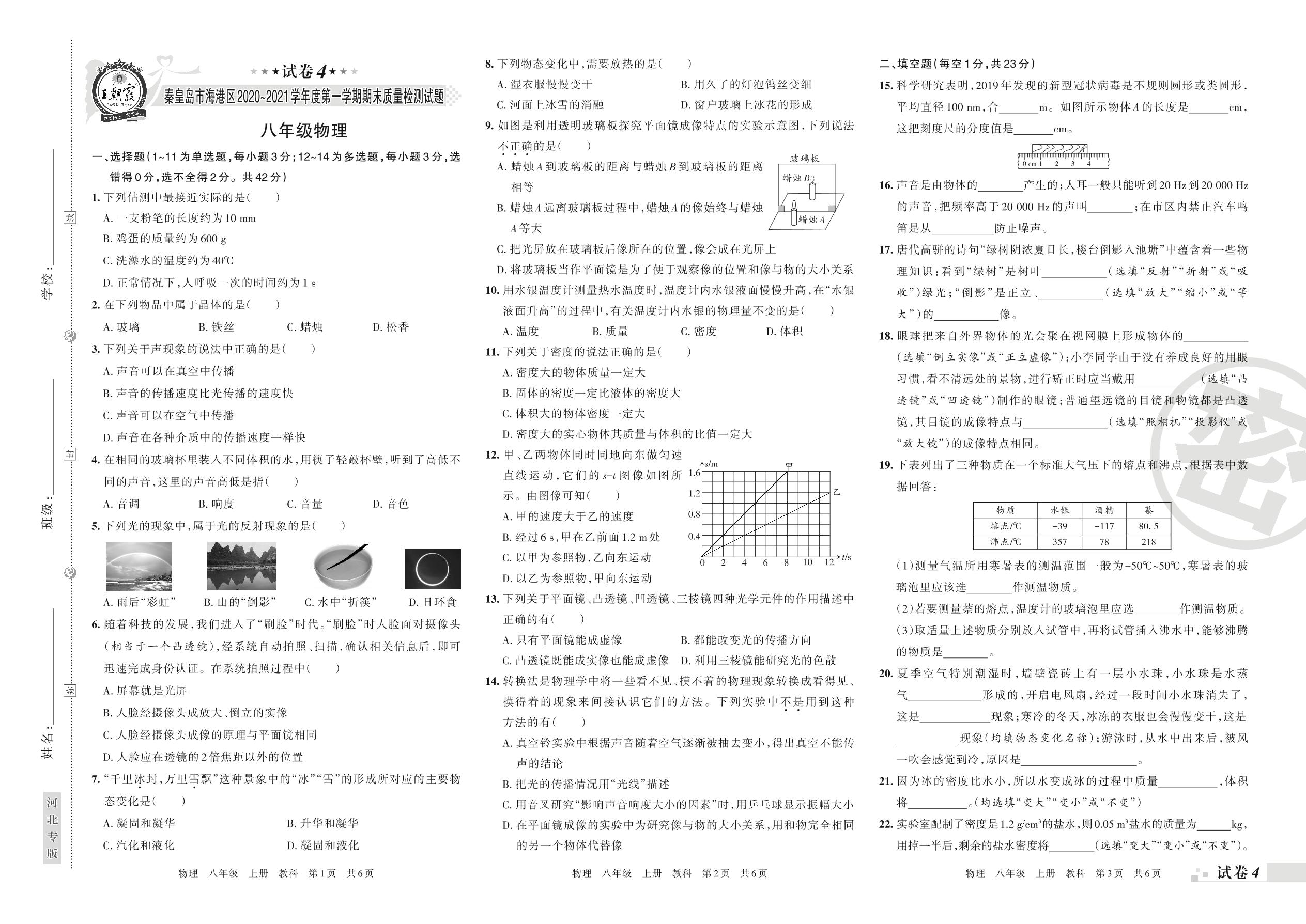 秦皇岛市海港区2020~2021学年度第一学期期末质量检测试题八年级物理(教科版)【4】