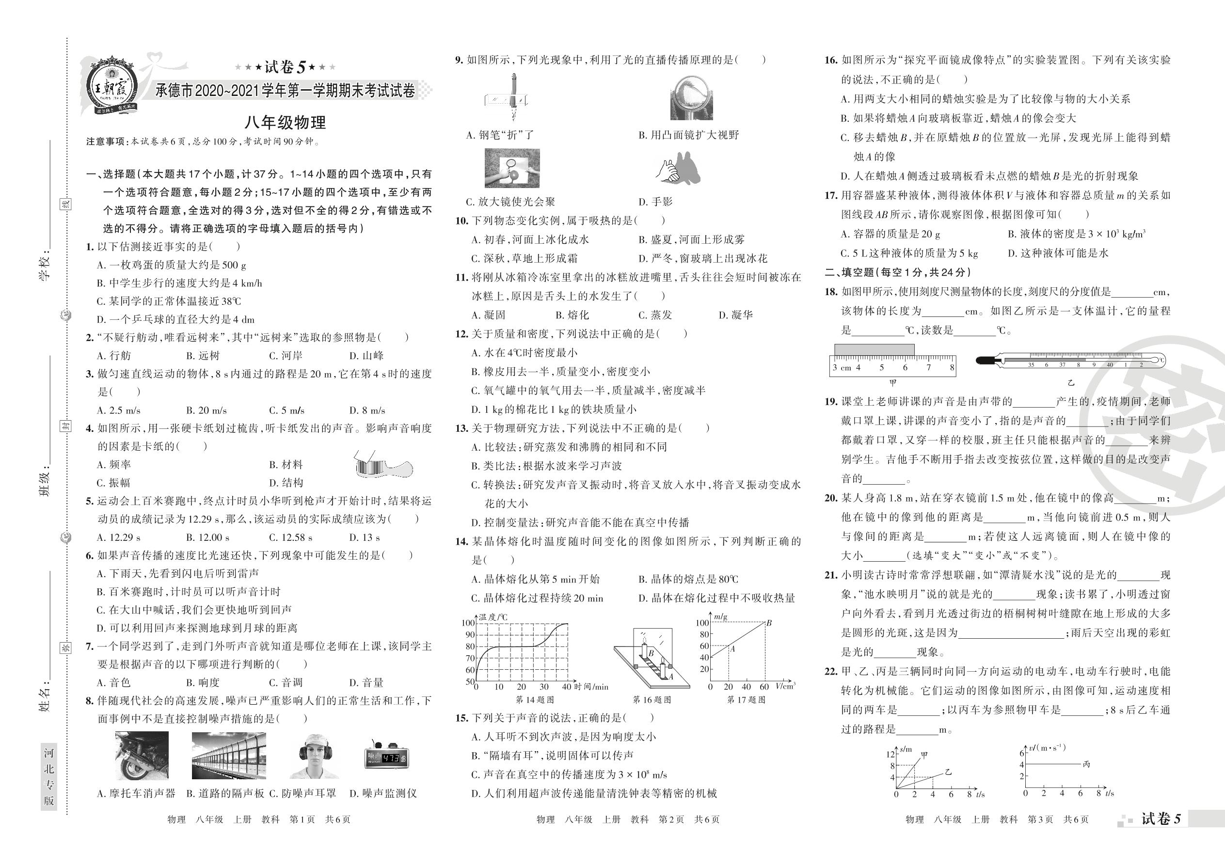 承德市2020~2021学年第一学期期末考试试卷八年级物理(教科版)【5】