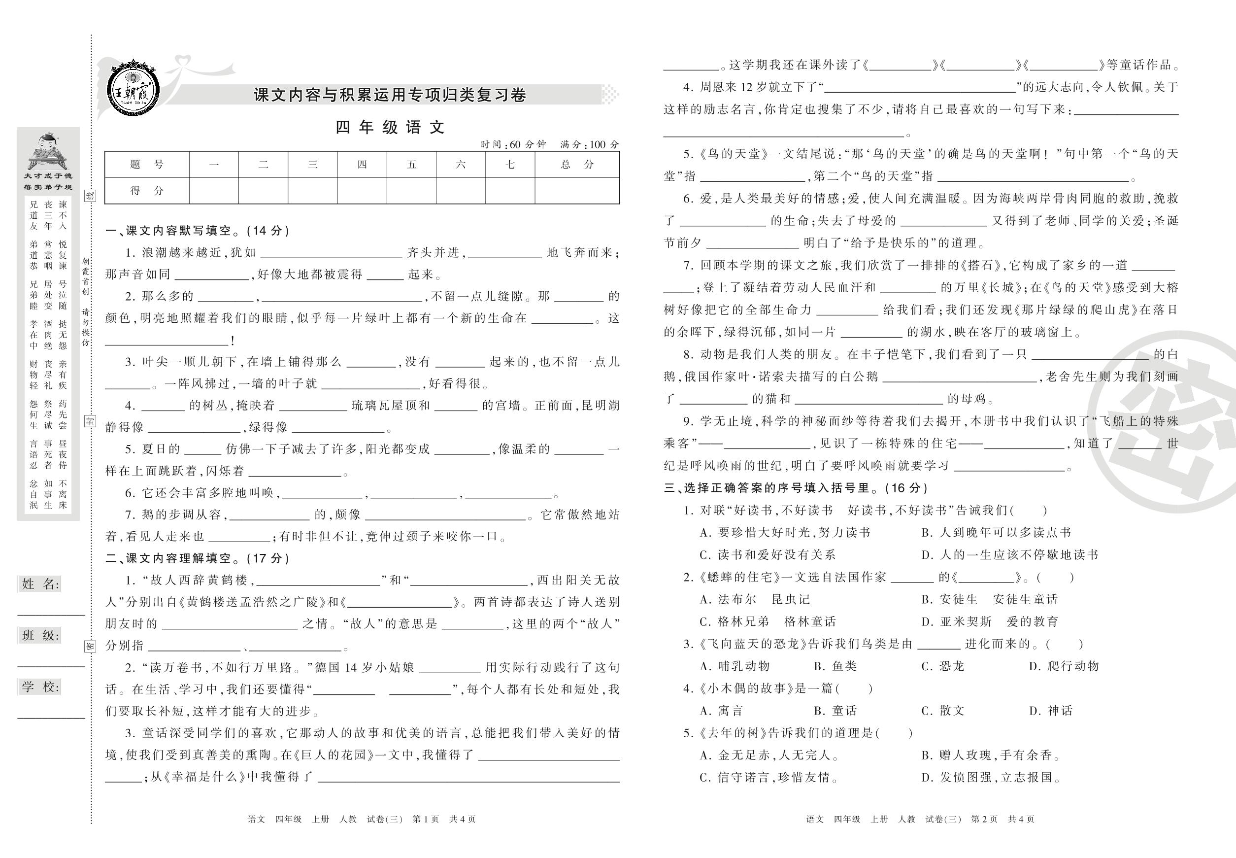 王朝霞期末专项卷四年级上册语文(人教版)_R210801213930【3】