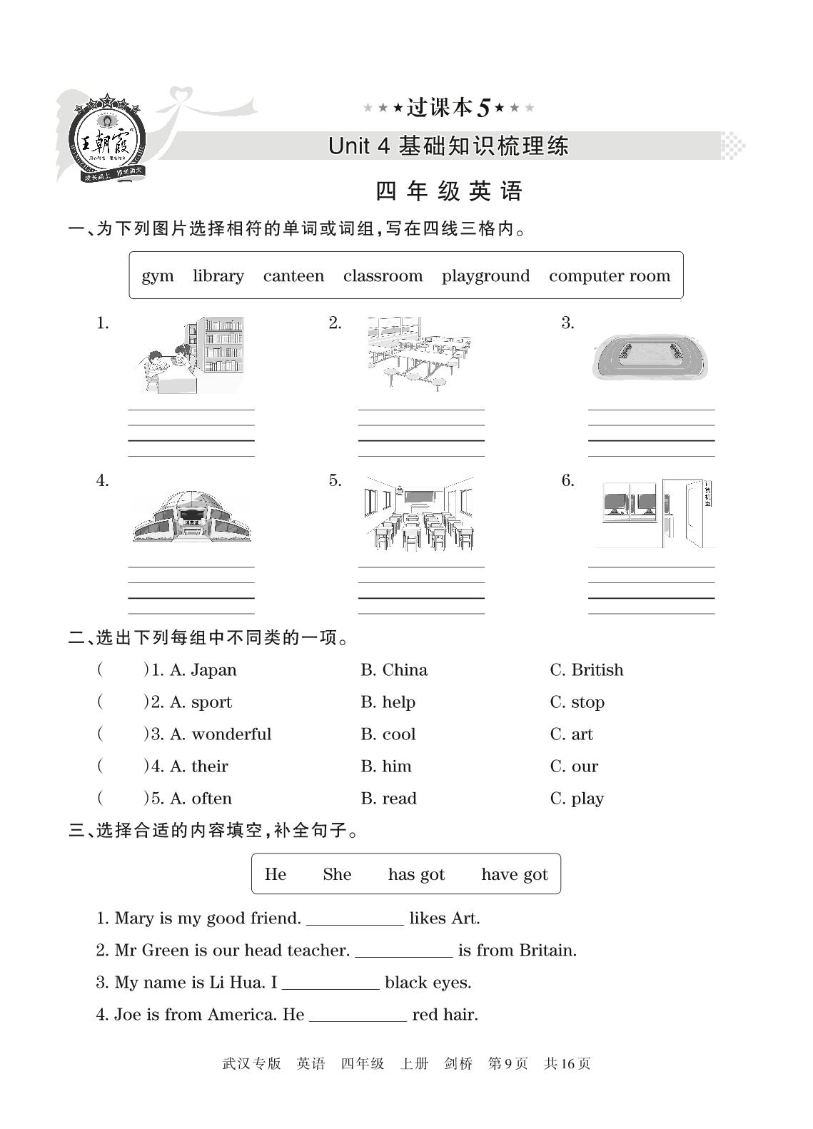 王朝霞期末过课本——Unit 4基础知识梳理练四年级上册英语(剑桥版)【5】