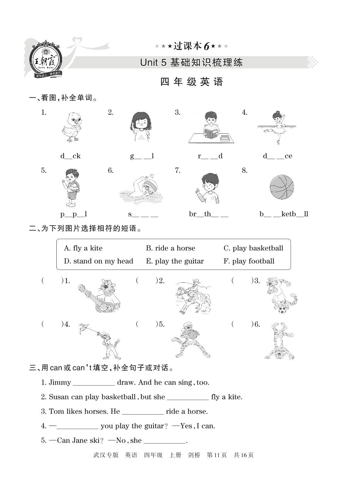 王朝霞期末过课本——Unit 5基础知识梳理练四年级上册英语(剑桥版)【6】