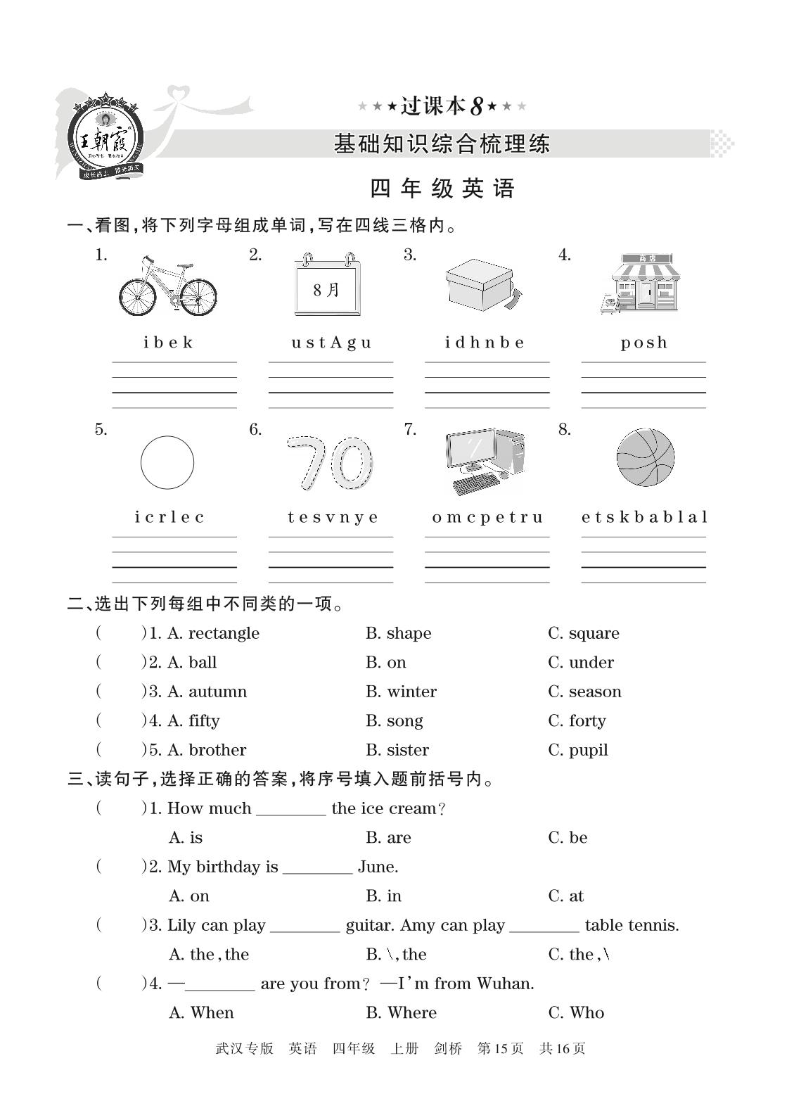 王朝霞期末过课本——基础知识综合梳理练四年级上册英语(剑桥版)【8】