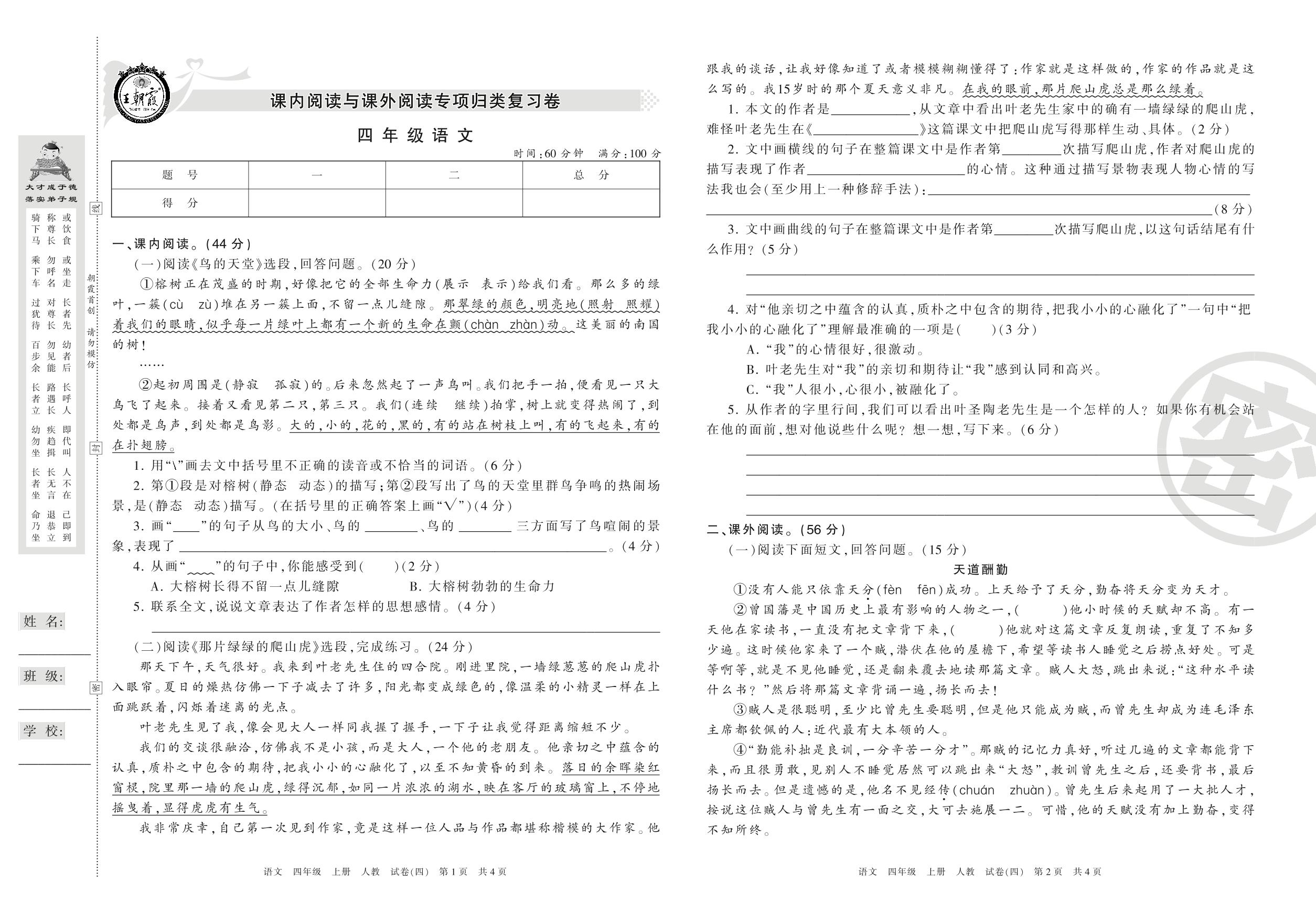 王朝霞期末专项卷四年级上册语文(人教版)_R210801213933【4】