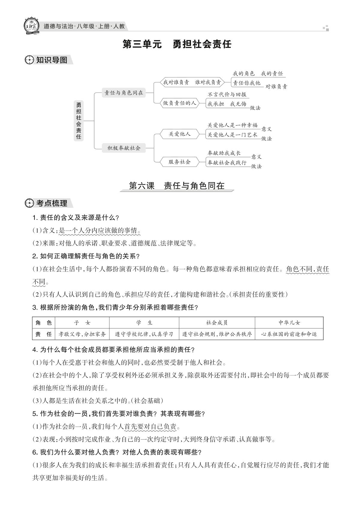 王朝霞期末知识梳理——第三单元 勇担社会责任八年级上册道德与法治(人教版)_R211223145045426【3】