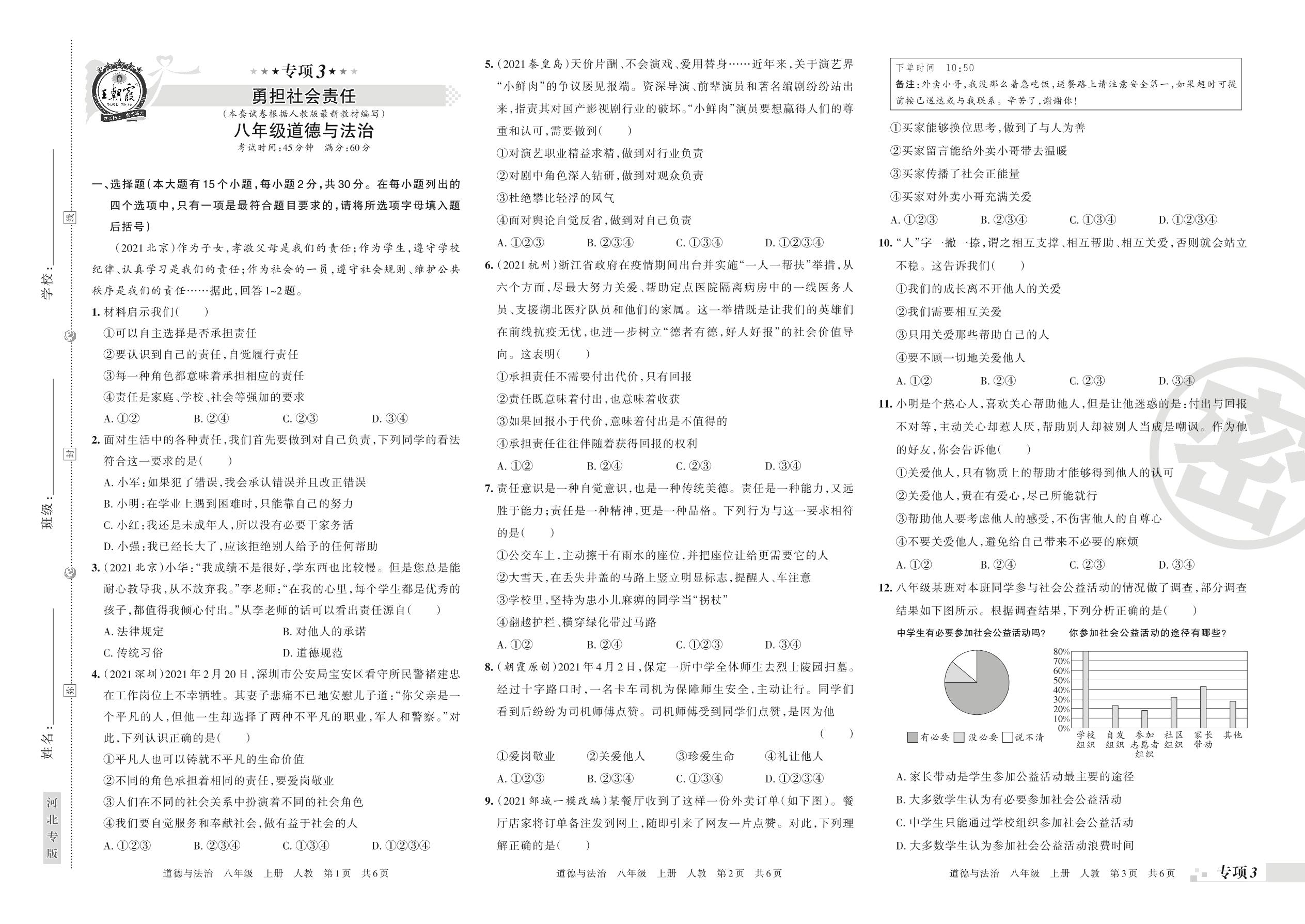 王朝霞期末专项卷——勇担社会责任八年级上册道德与法治(人教版)_R211223145045289【3】
