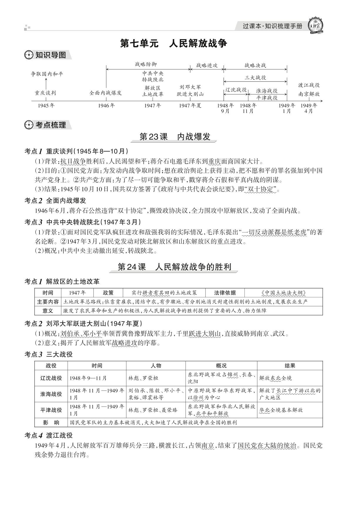 王朝霞期末知识梳理——第七单元 人民解放战争八年级上册历史(人教版)_R211223145458938【7】