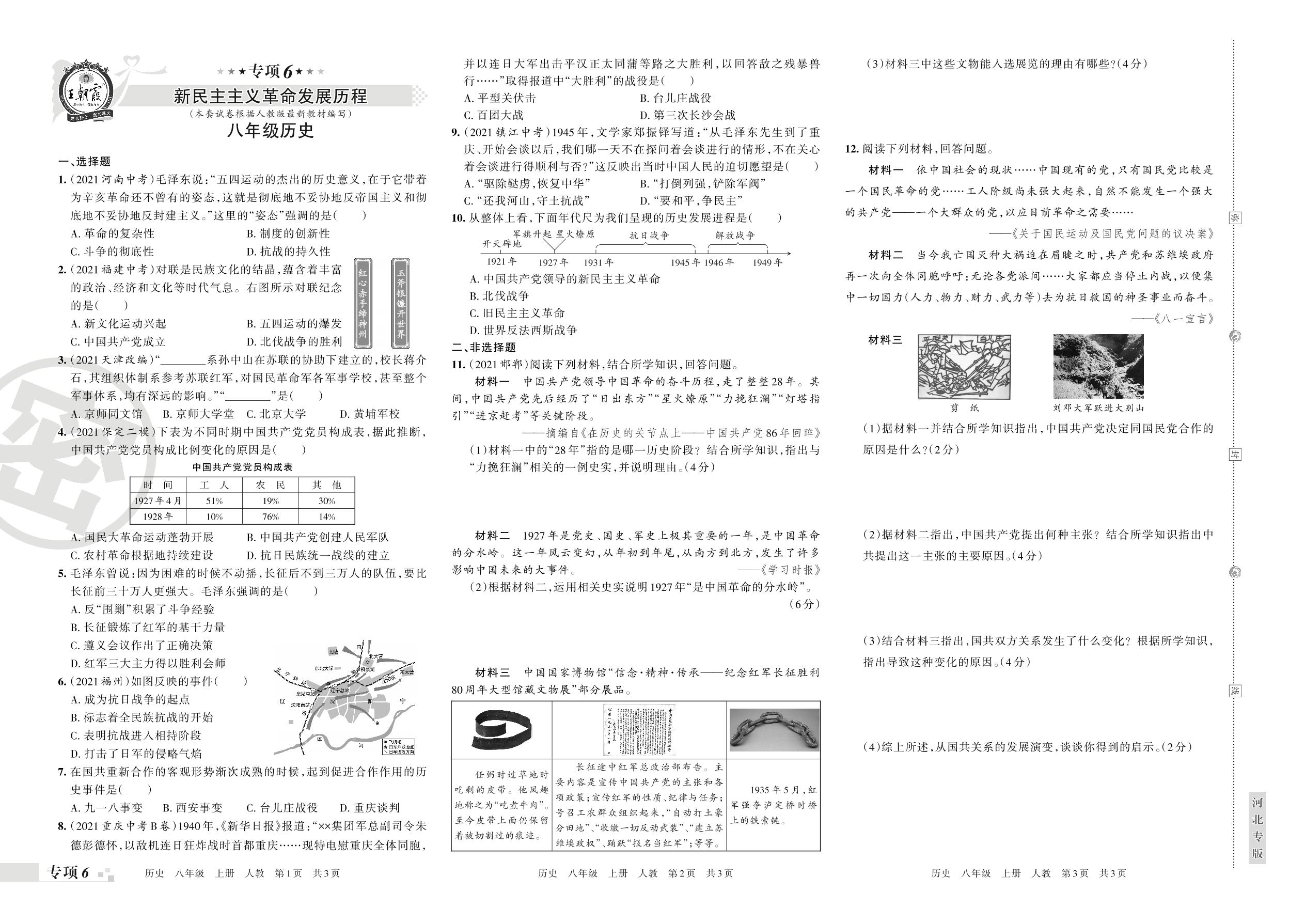 王朝霞期末专项卷——新民主主义革命发展历程八年级上册历史(人教版)【6】