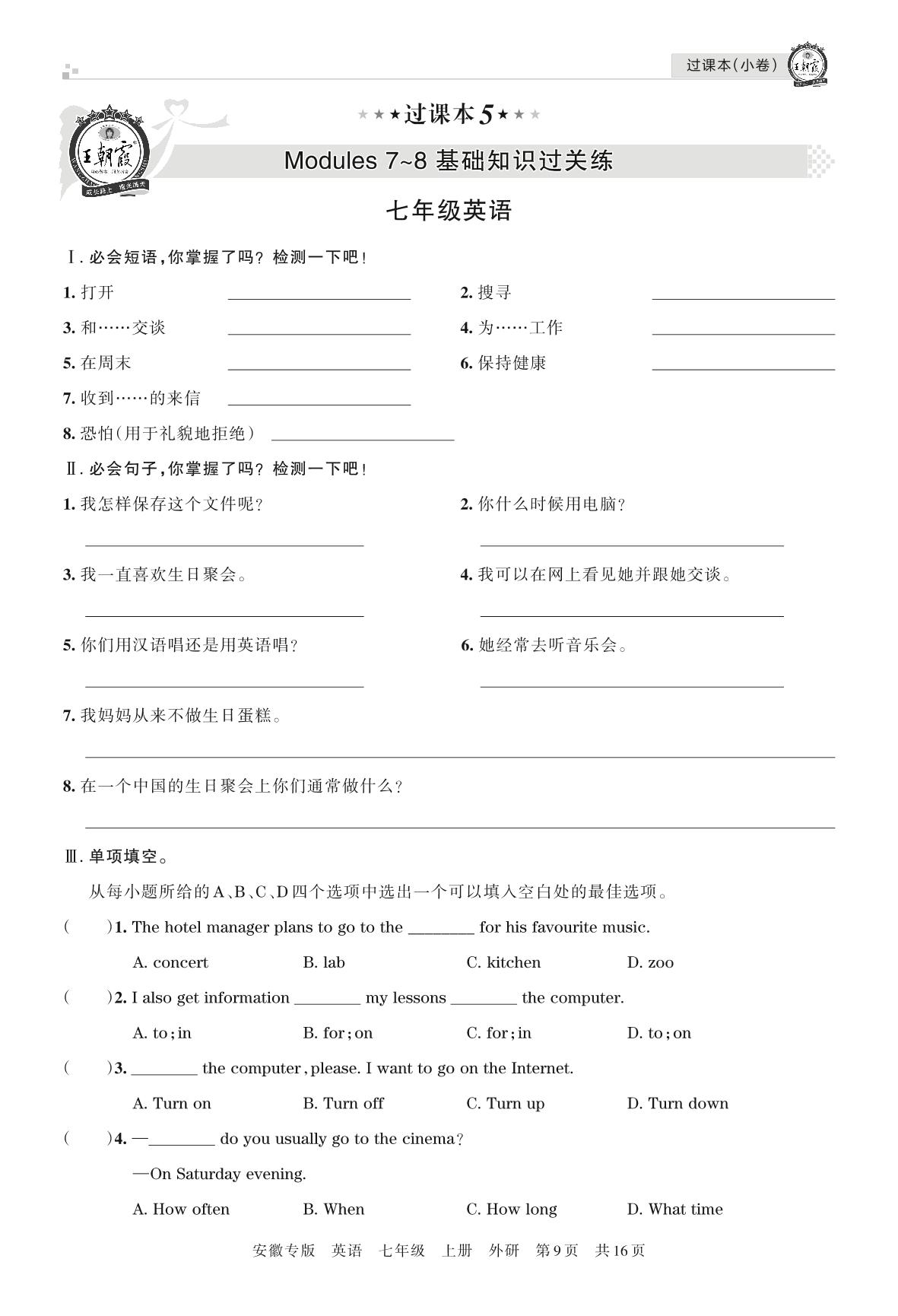 王朝霞期末过课本——Modules 7~8 基础知识过关练七年级上册英语(外研版)【5】