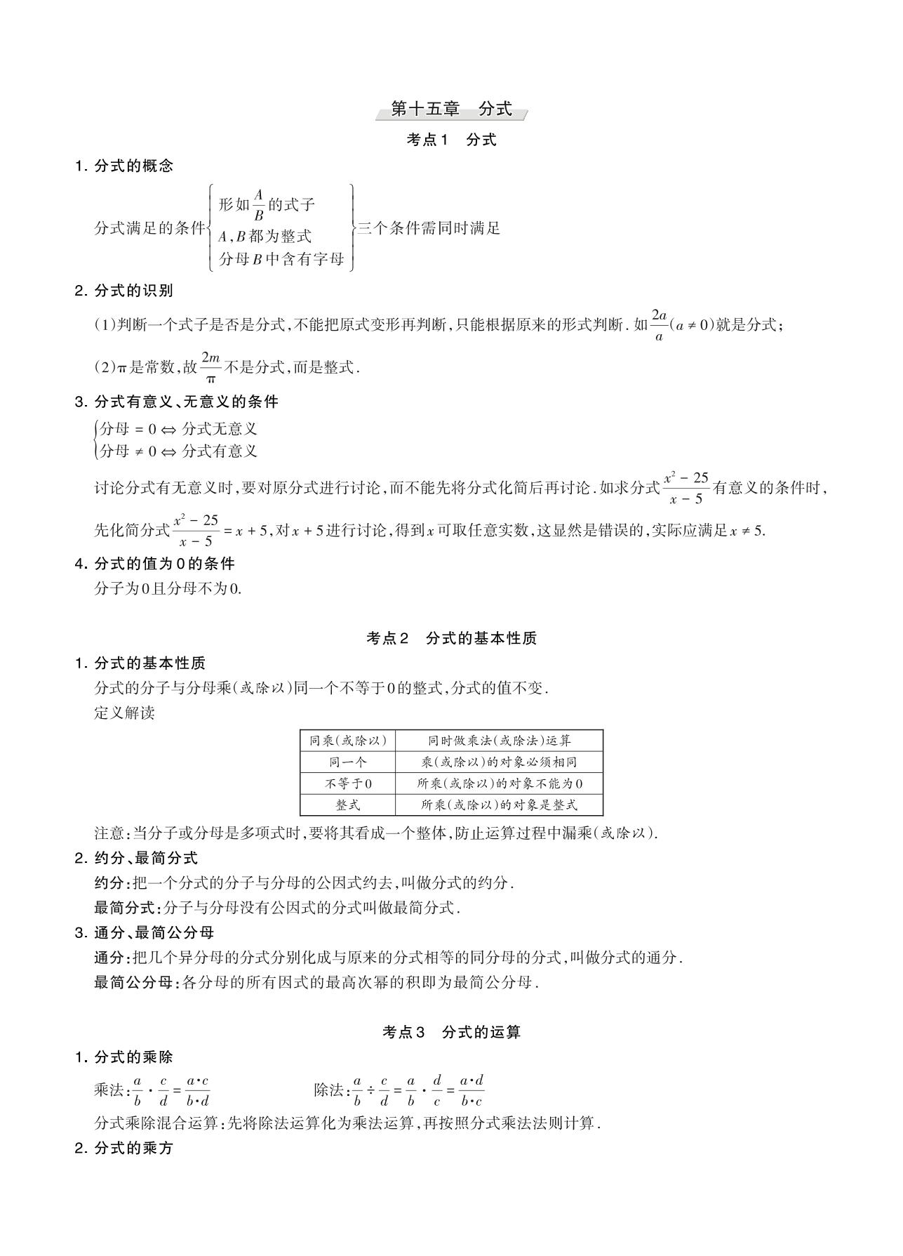 王朝霞期末知识梳理——第十五章 分式八年级上册数学(人教版)【5】