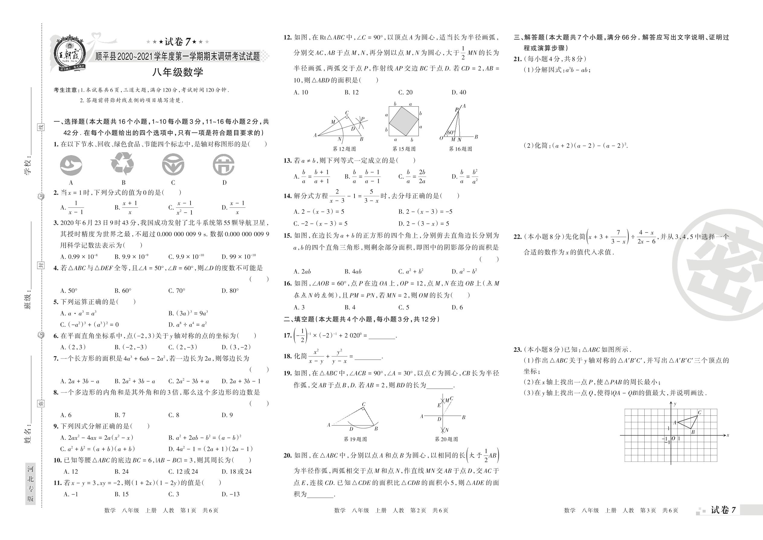 顺平县2020~2021学年度第一学期期末调研考试试题八年级数学(人教版)【7】