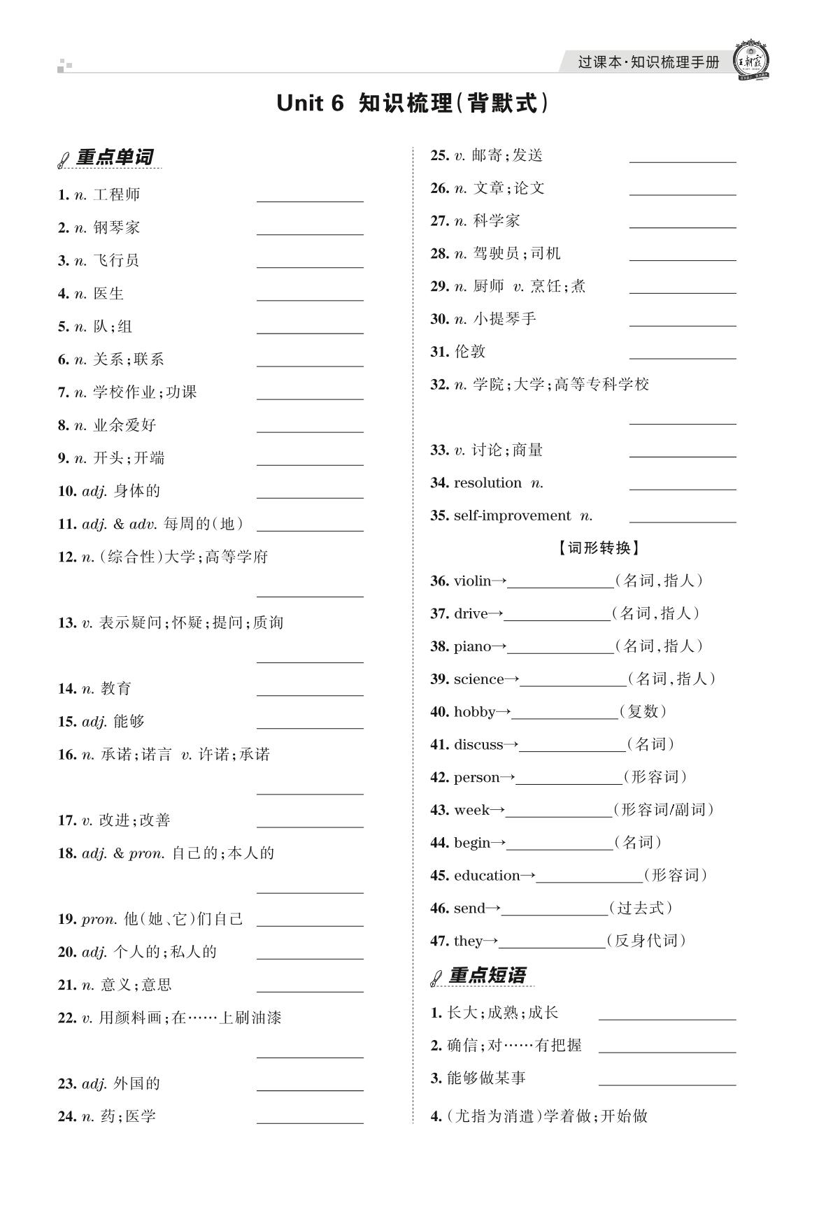 王朝霞期末过课本——Unit 6 知识梳理(背默式)八年级上册英语(人教版)【6】