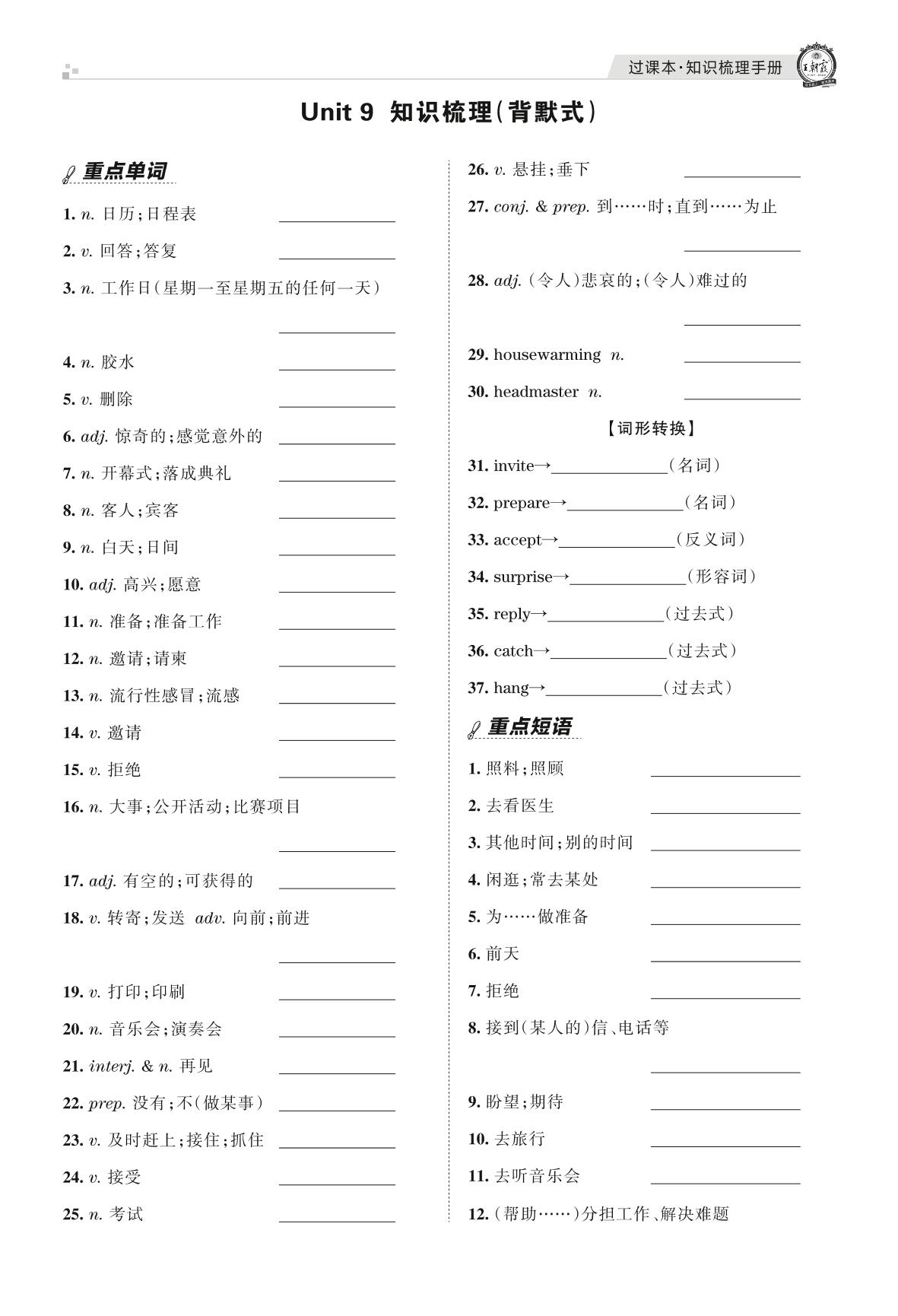 王朝霞期末过课本——Unit 9 知识梳理(背默式)八年级上册英语(人教版)【9】