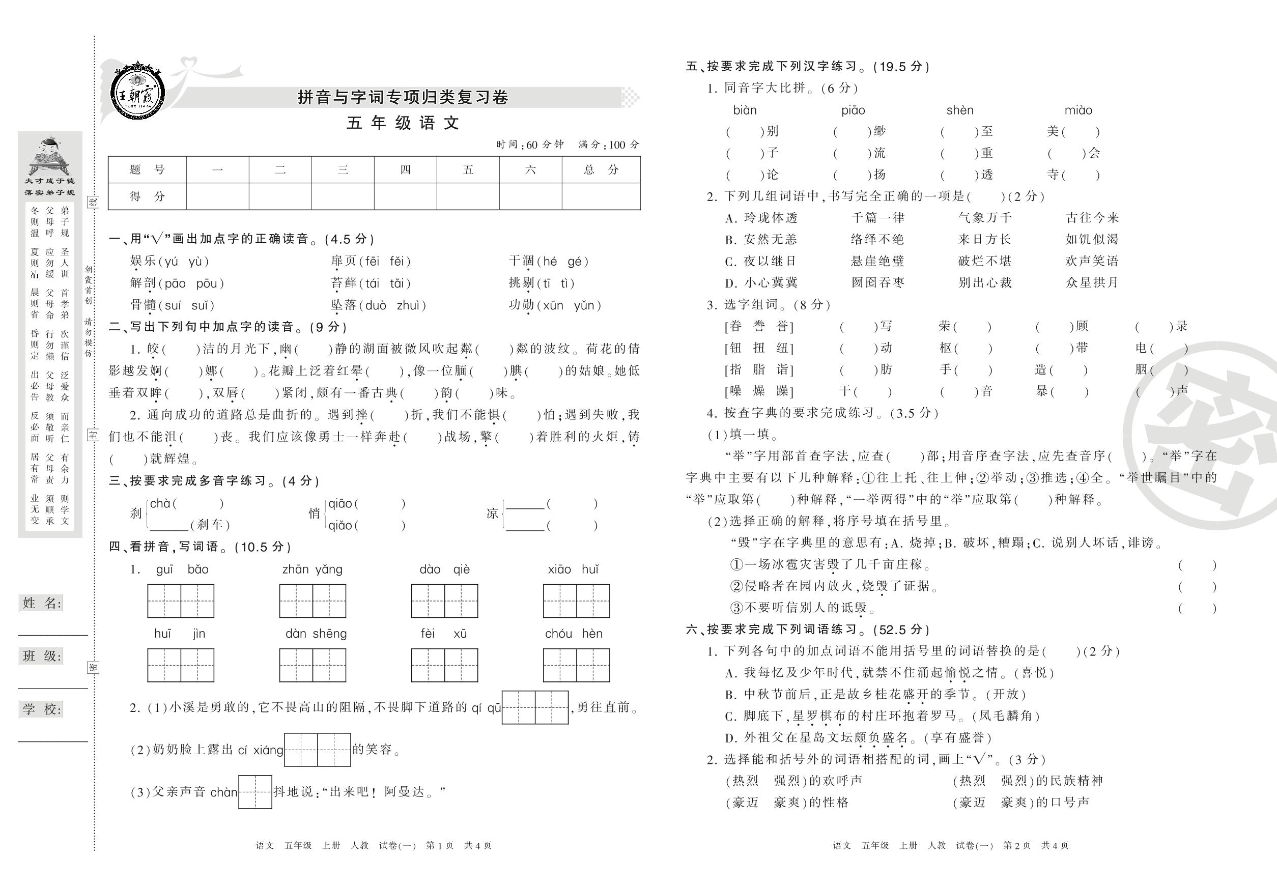 五年级语文人教版上册专项卷