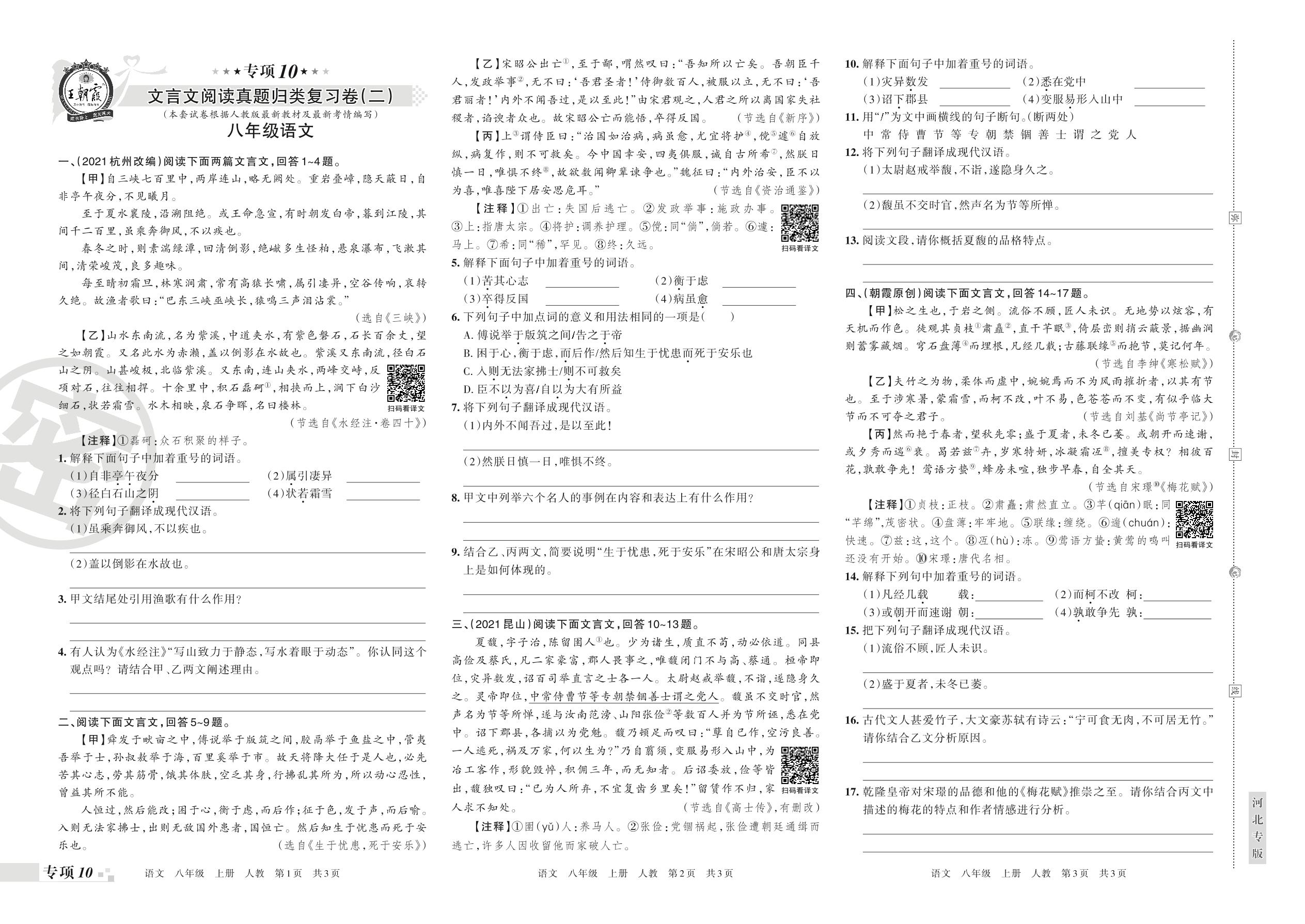 王朝霞期末专项卷——文言文阅读真题归类复习卷(二)八年级上册语文(人教版)【10】