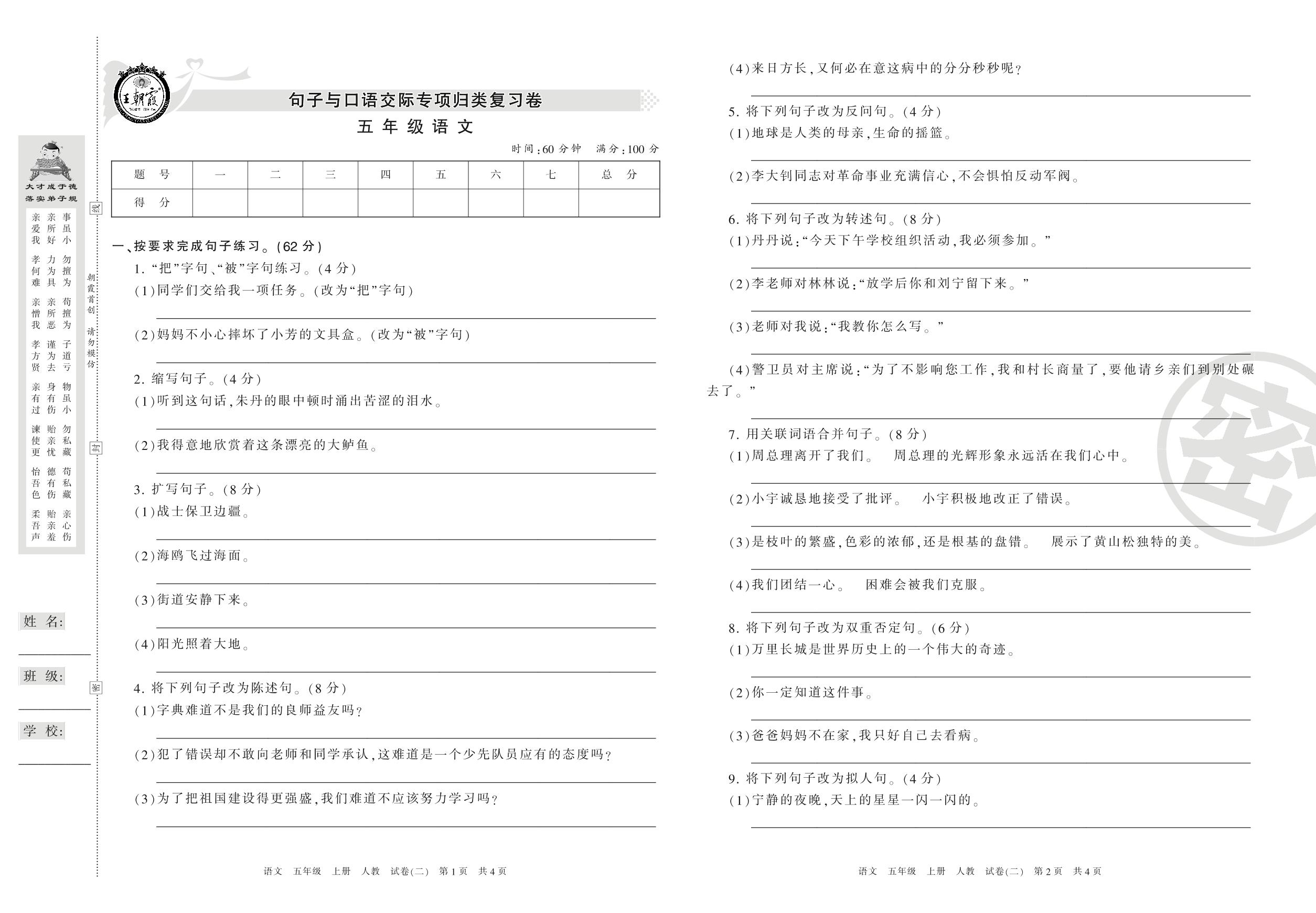 王朝霞期末专项卷五年级上册语文(人教版)_R210801214010【2】