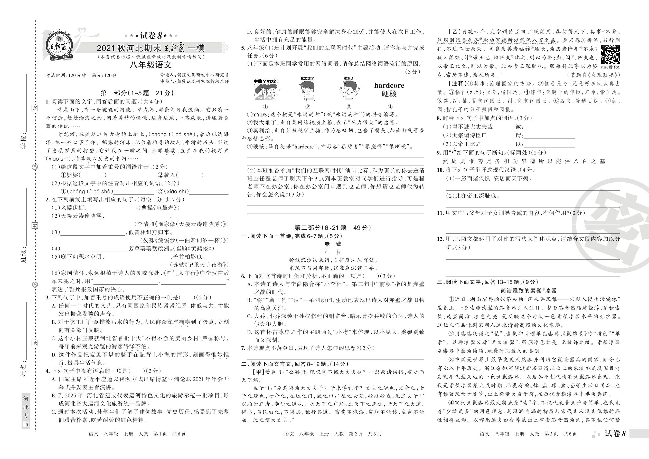 王朝霞期末模拟卷八年级上册语文(人教版)_R211223151634939【8】