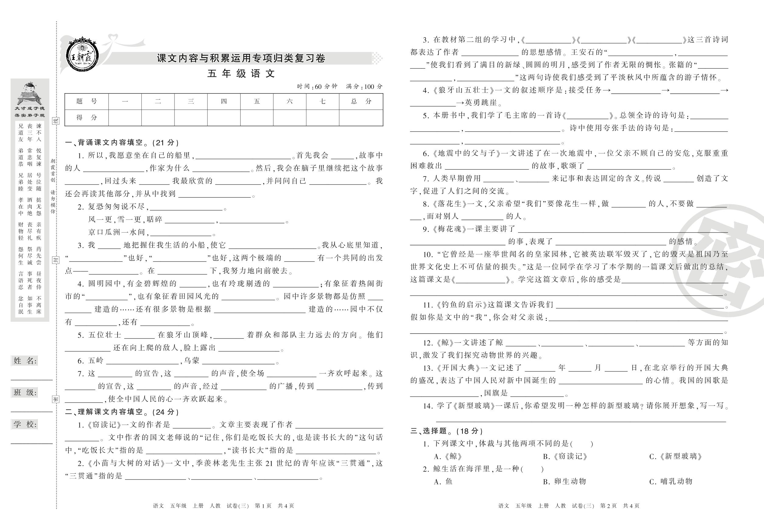 王朝霞期末专项卷五年级上册语文(人教版)_R210801214014【3】