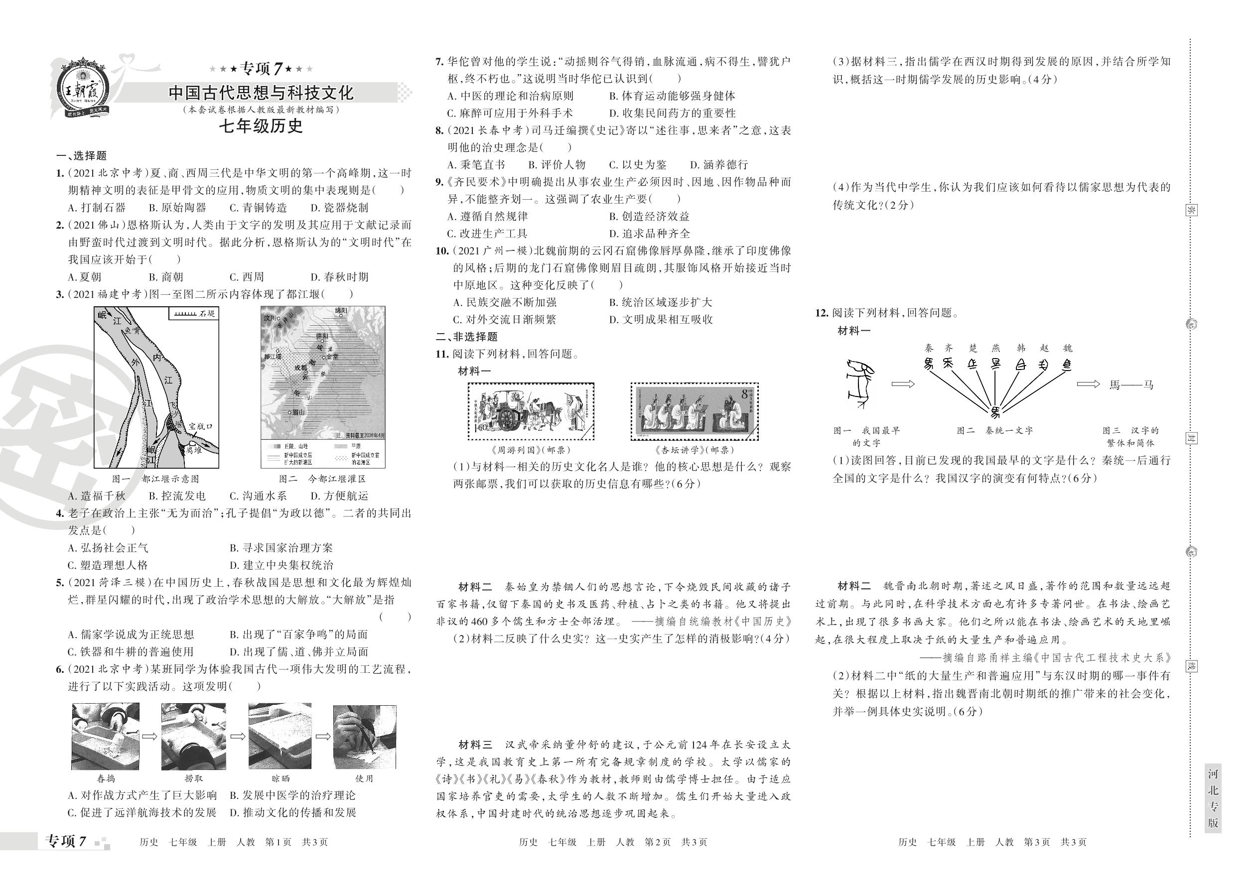王朝霞期末专项卷——中国古代思想与科技文化七年级上册历史(人教版)【7】