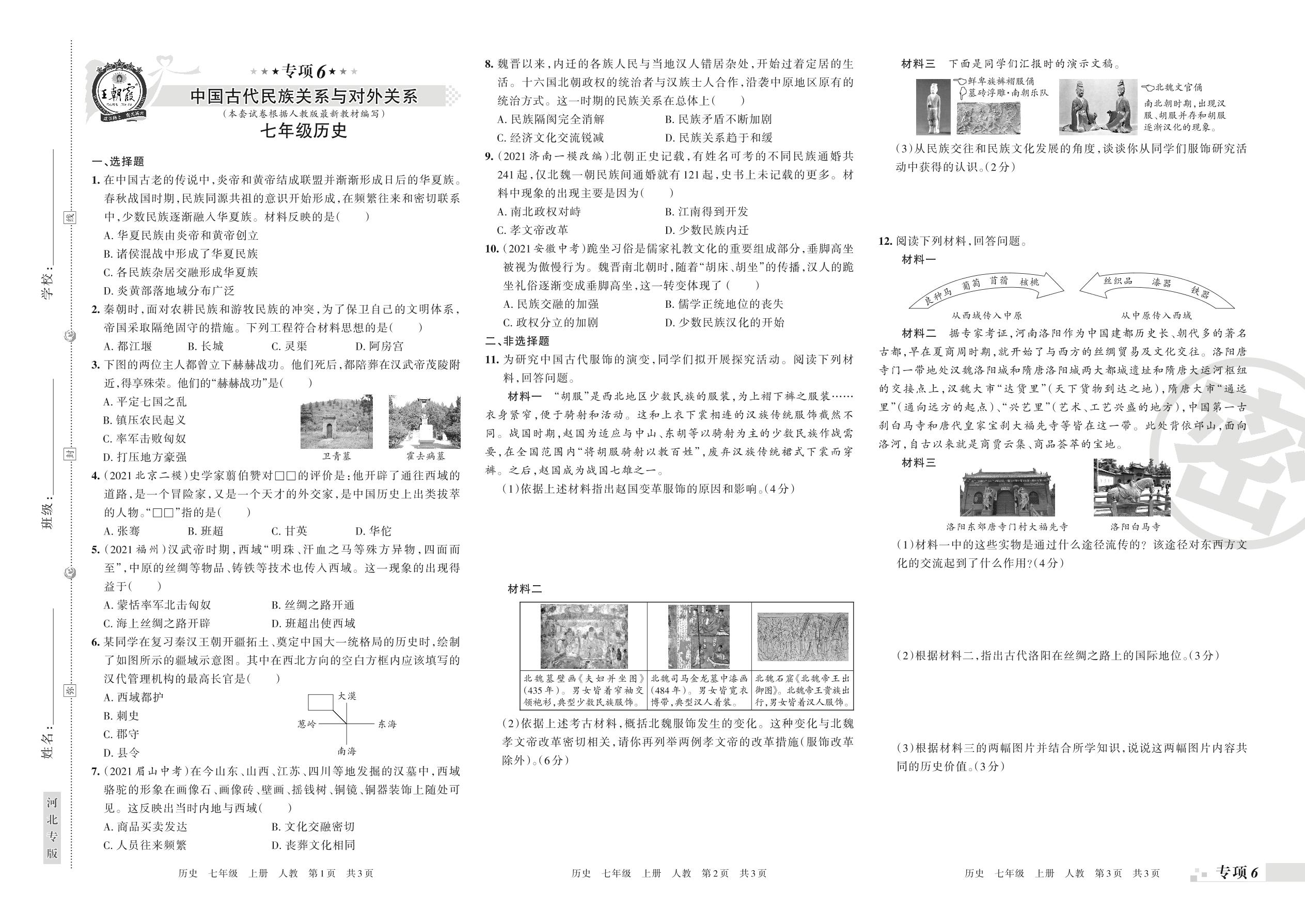 王朝霞期末专项卷——中国古代民族关系与对外关系七年级上册历史(人教版)【6】