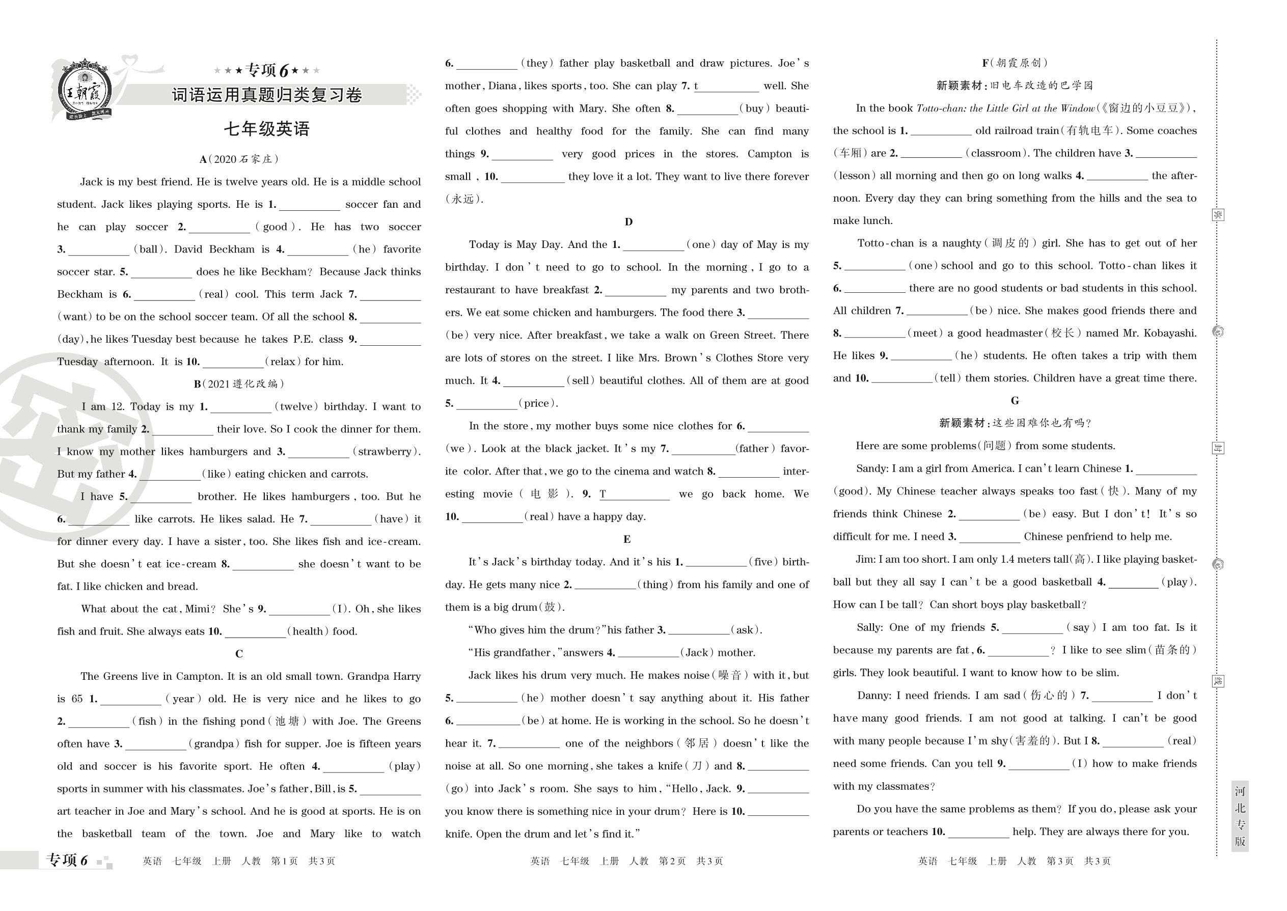 王朝霞期末专项卷——词语运用真题归类复习卷七年级上册英语(人教版)【6】