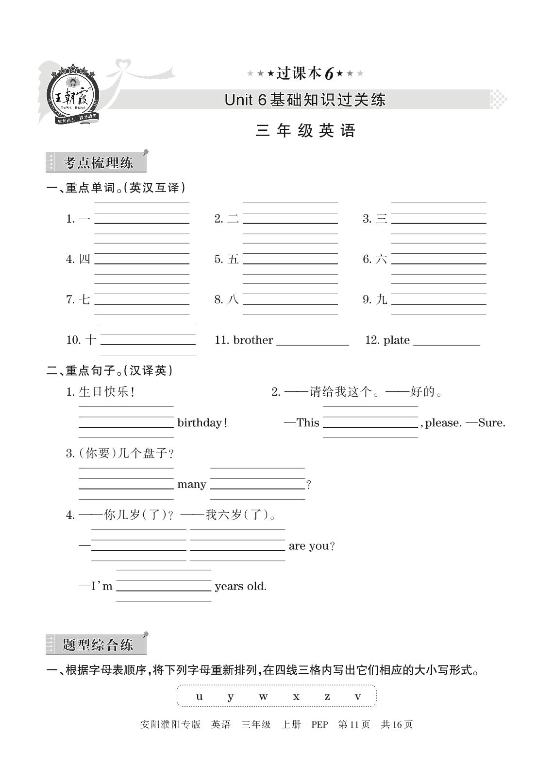 王朝霞期末过课本——Unit 6基础知识过关练三年级上册英语(人教PEP版)_R211223154526108【6】