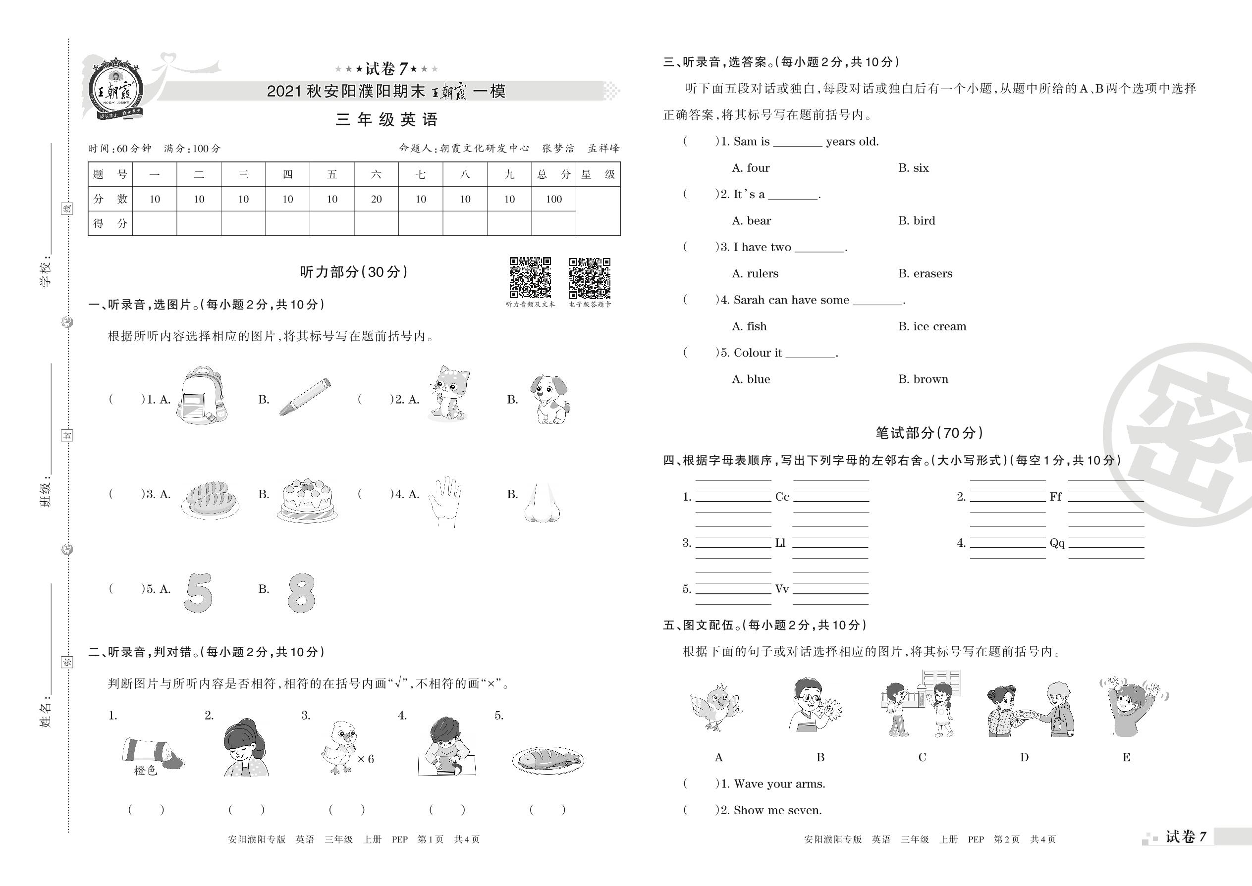 王朝霞期末模拟卷三年级上册英语(人教PEP版)_R211223154527350【7】