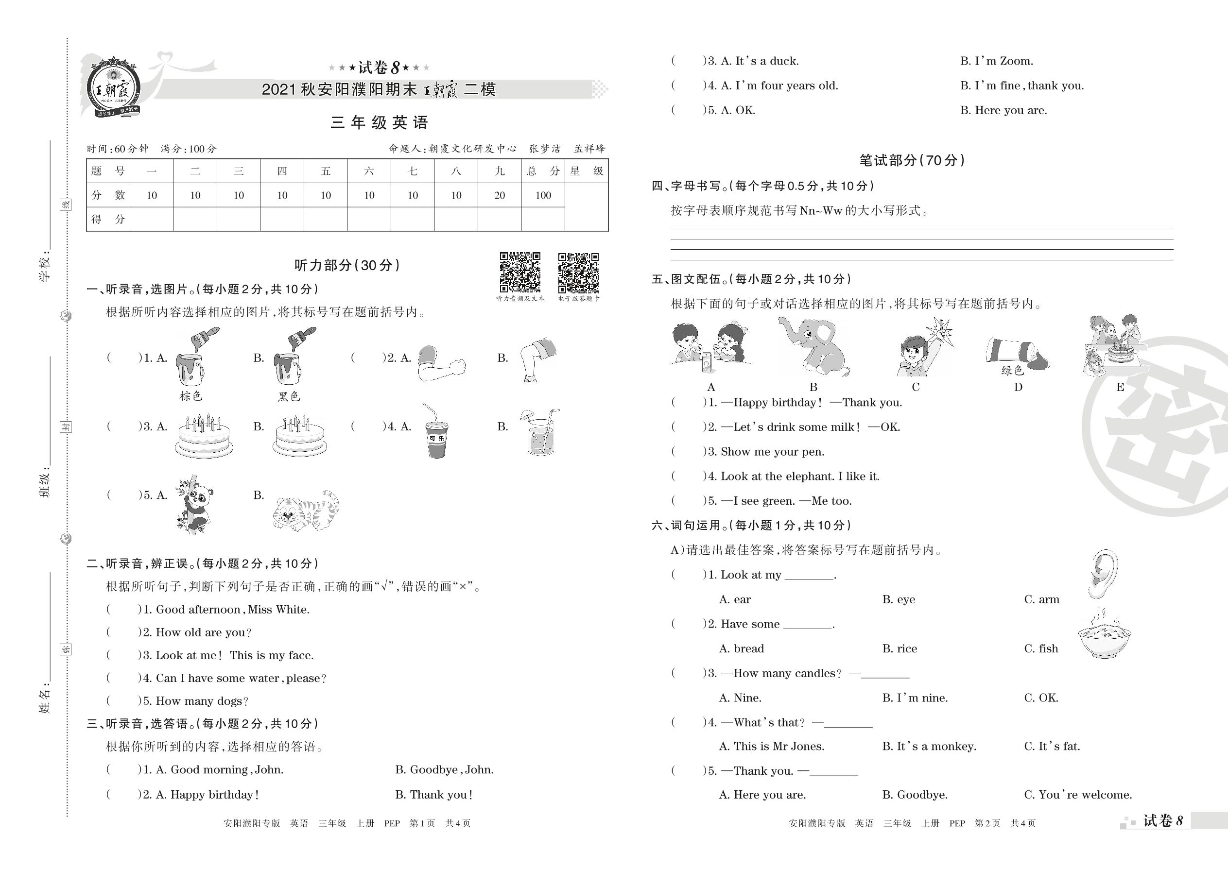 王朝霞期末模拟卷三年级上册英语(人教PEP版)_R211223154527630【8】