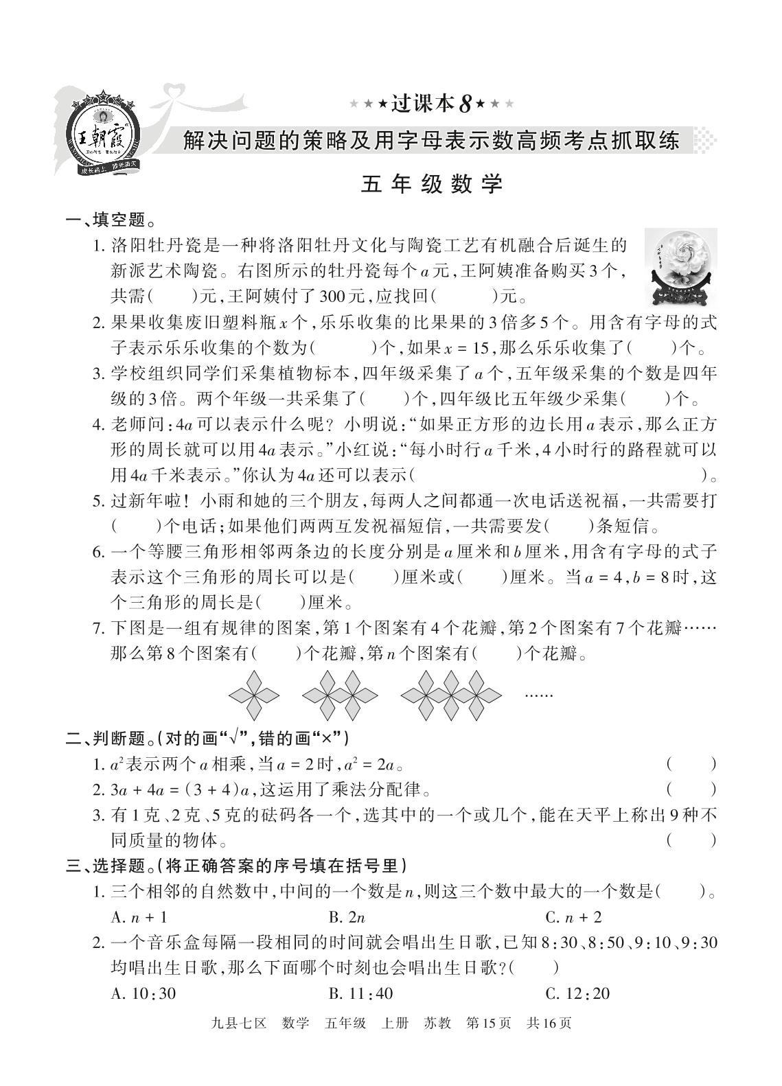 王朝霞期末过课本——解决问题的策略及用字母表示数高频考点抓取练五年级上册数学(苏教版)_R211223155751845【8】