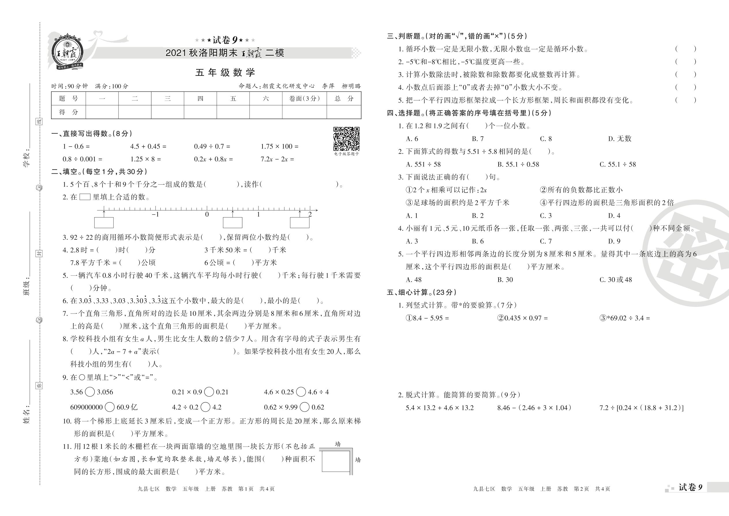 王朝霞期末模拟卷五年级上册数学(苏教版)_R211223155752771【9】