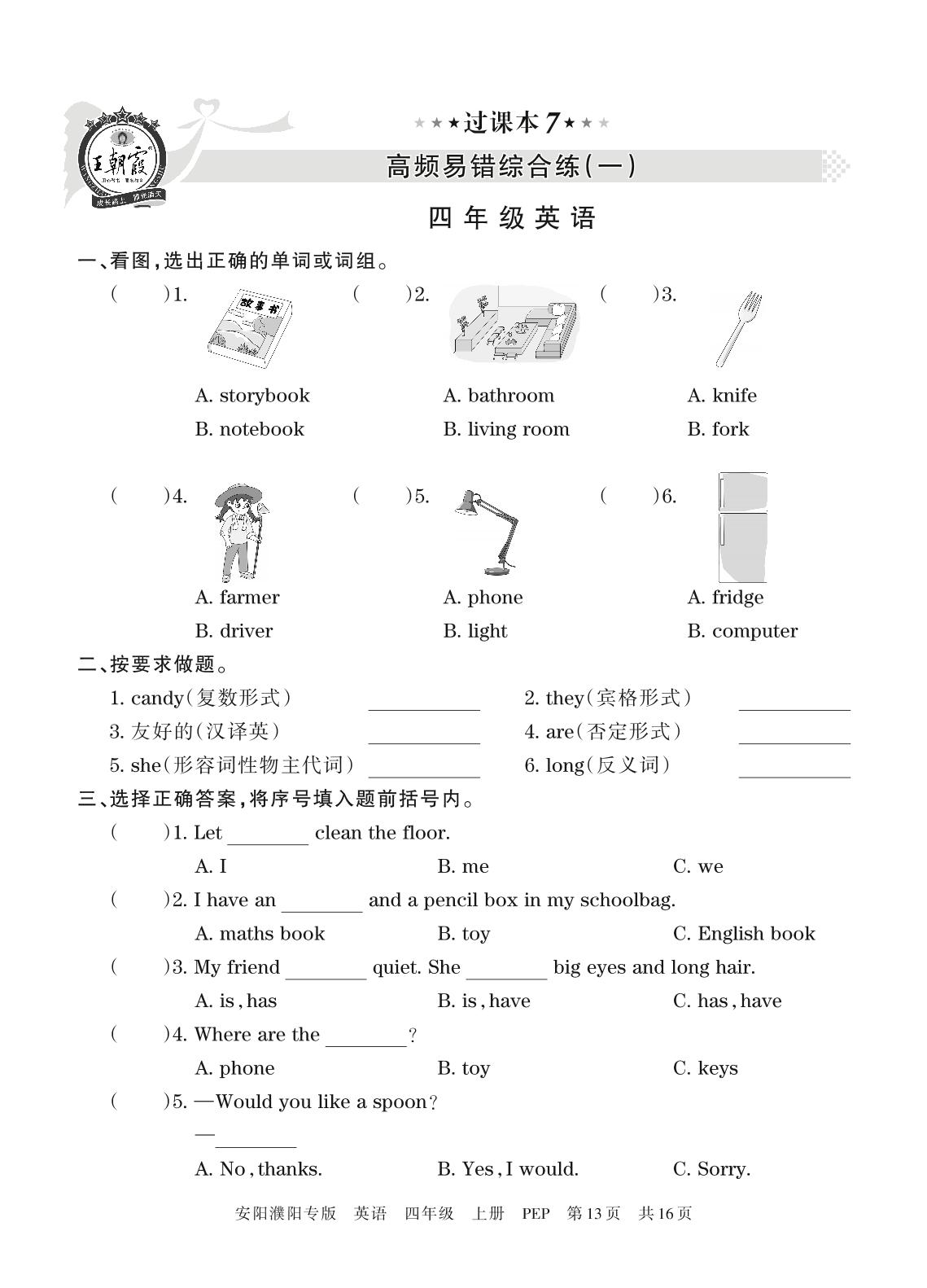 王朝霞期末过课本——高频易错综合练(一)四年级上册英语(人教PEP版)_R211223162153146【7】
