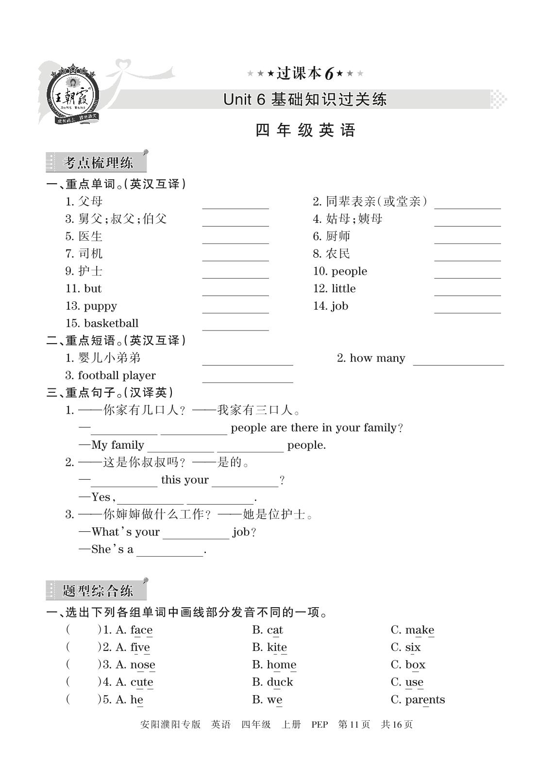王朝霞期末过课本——Unit 6基础知识过关练四年级上册英语(人教PEP版)_R211223162154436【6】