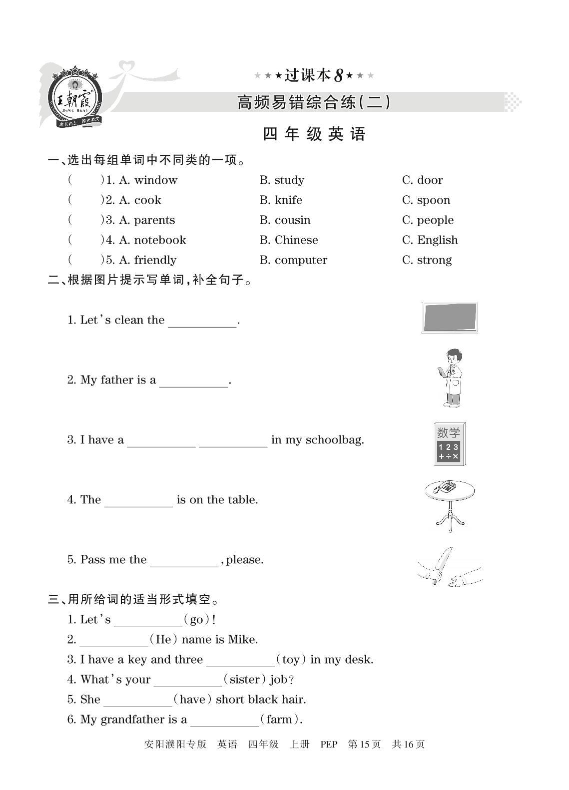 王朝霞期末过课本——高频易错综合练(二)四年级上册英语(人教PEP版)_R211223162154717【8】