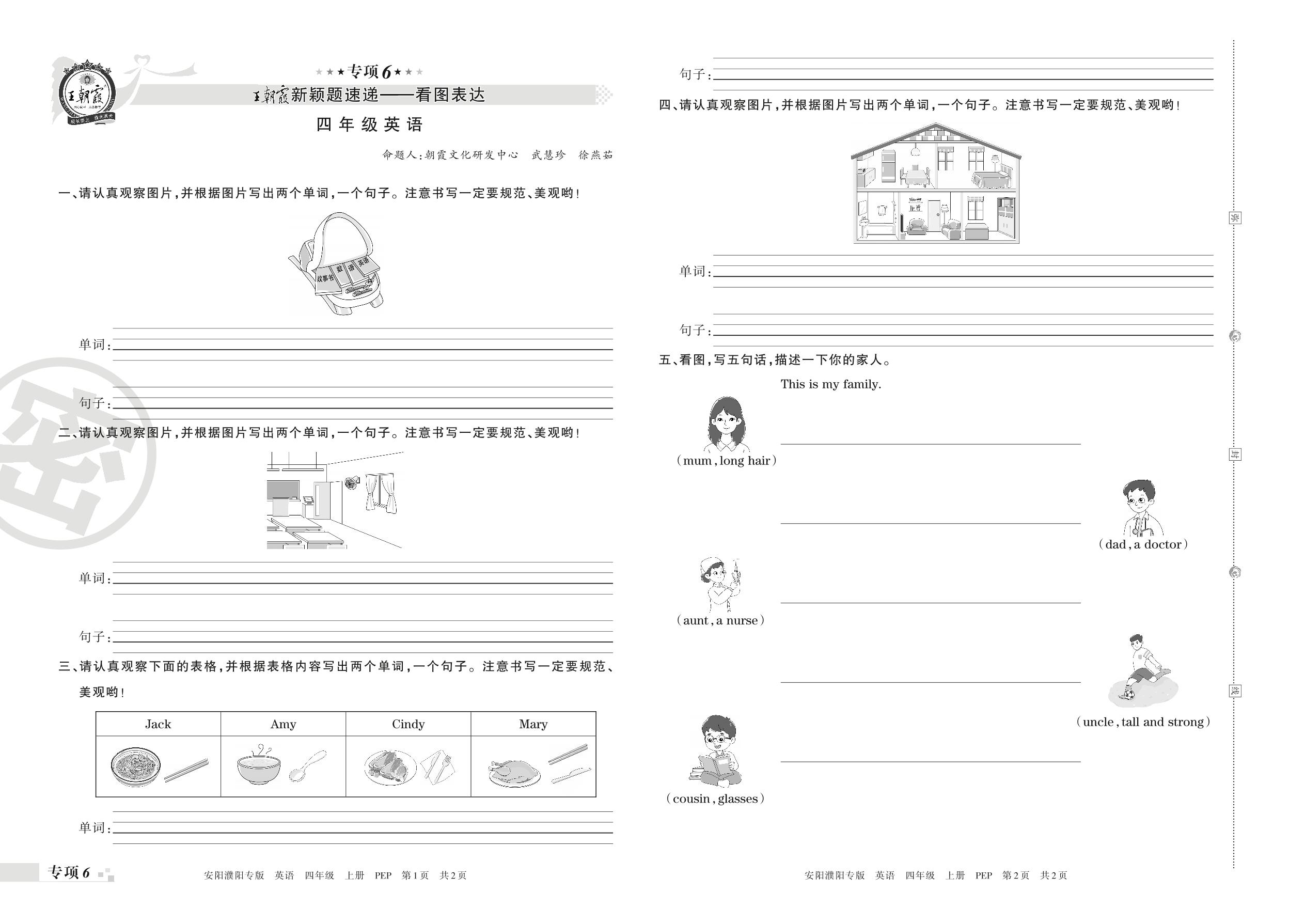 王朝霞期末专项卷——新颖题速递:看图表达四年级上册英语(人教PEP版)【6】
