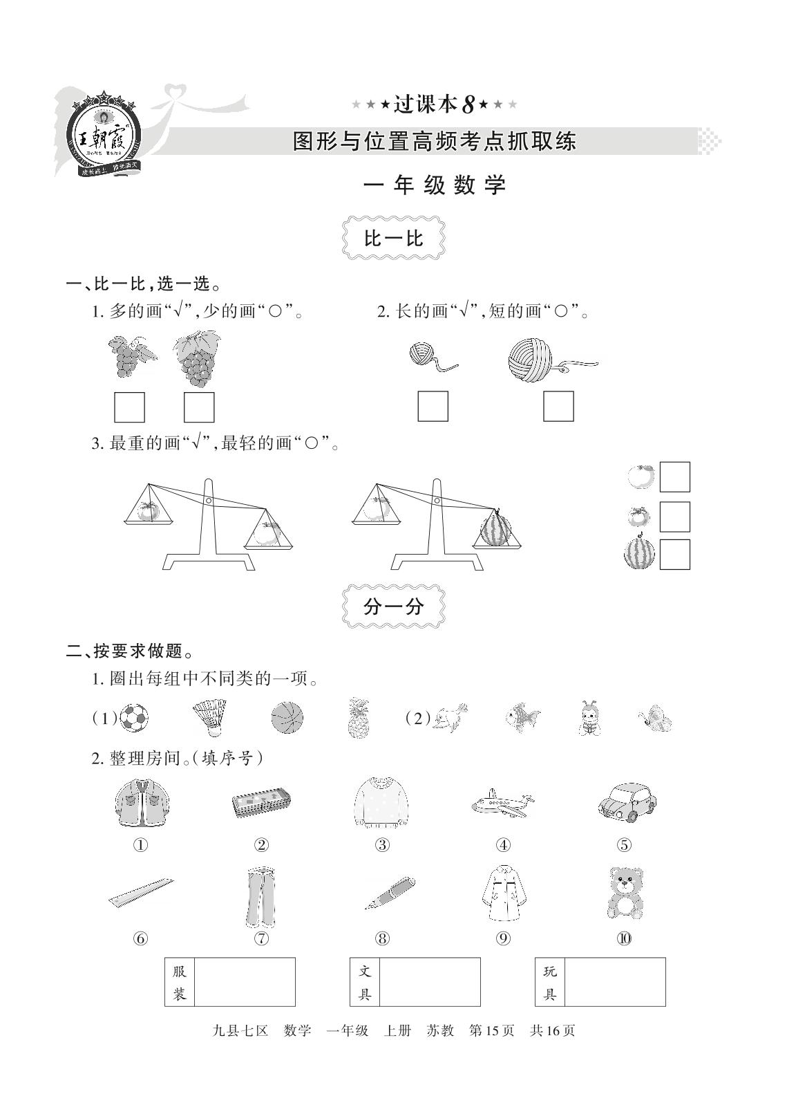 王朝霞期末过课本——图形与位置高频考点抓取练一年级上册数学(苏教版)【8】