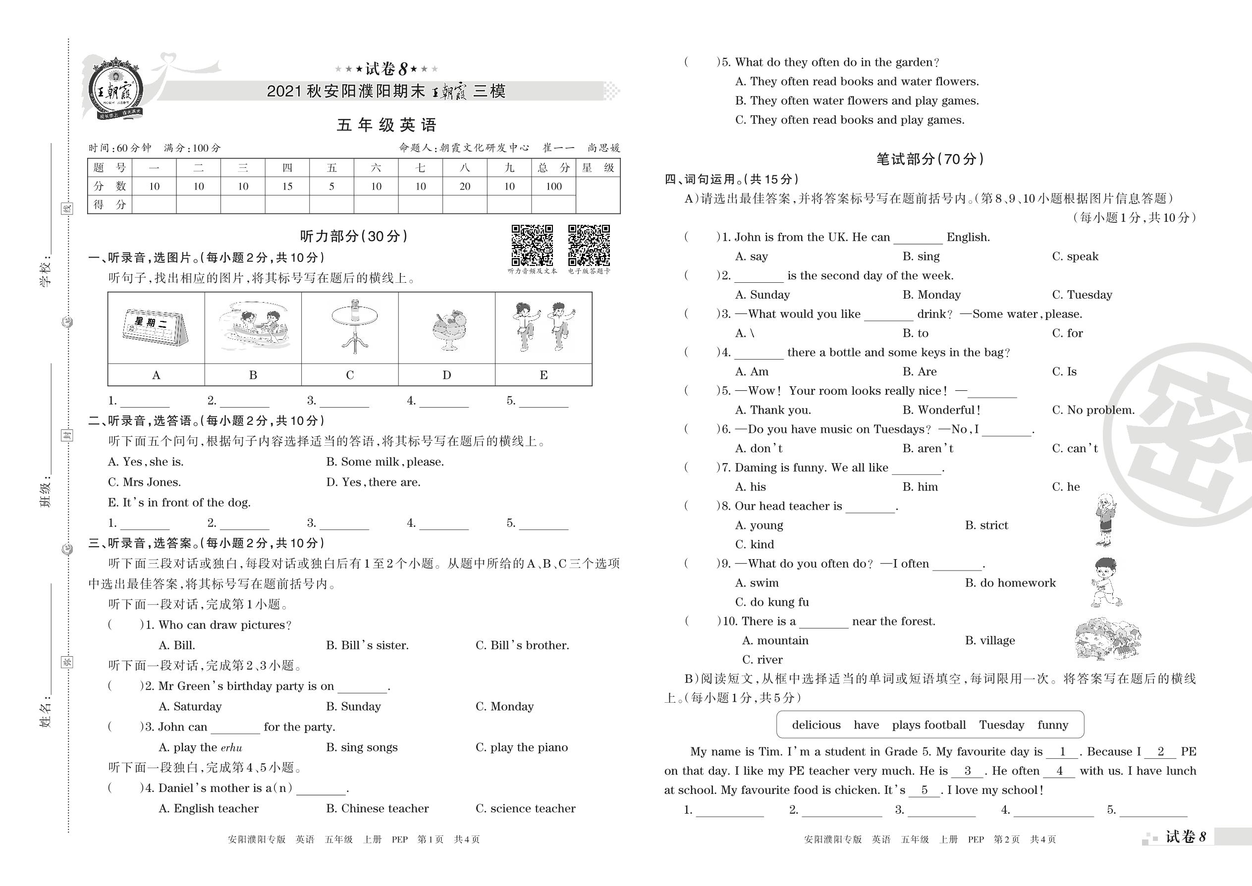 王朝霞期末模拟卷五年级上册英语(人教PEP版)_R211223164504163【8】