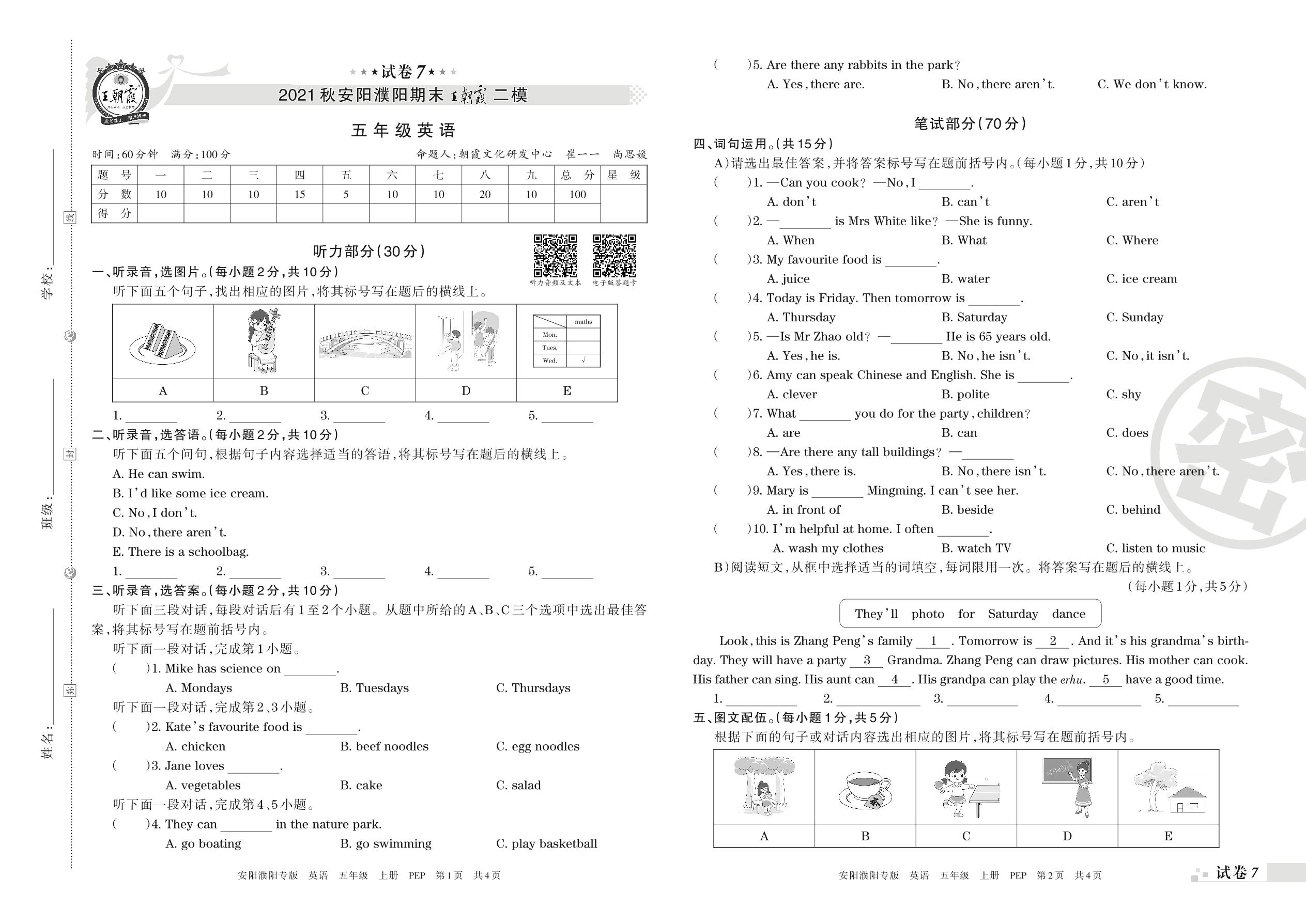 王朝霞期末模拟卷五年级上册英语(人教PEP版)_R211223164504133【7】