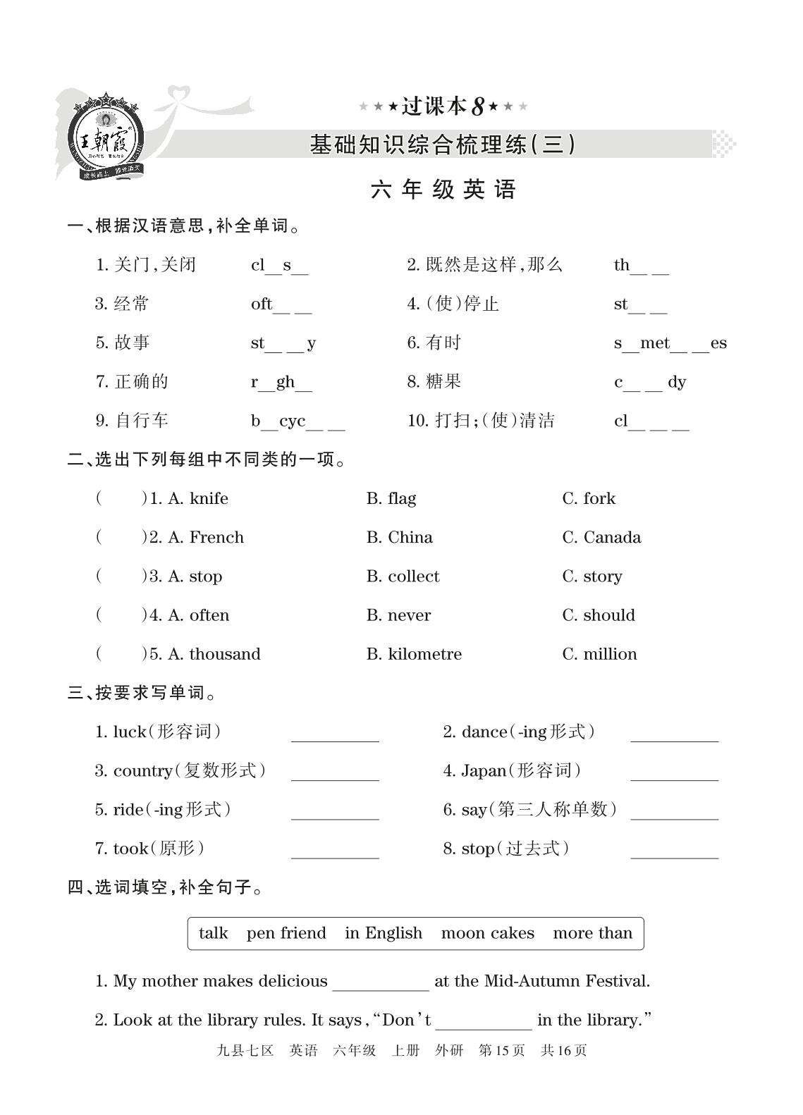 王朝霞期末过课本——基础知识综合梳理练(三)六年级上册英语(外研版)【8】