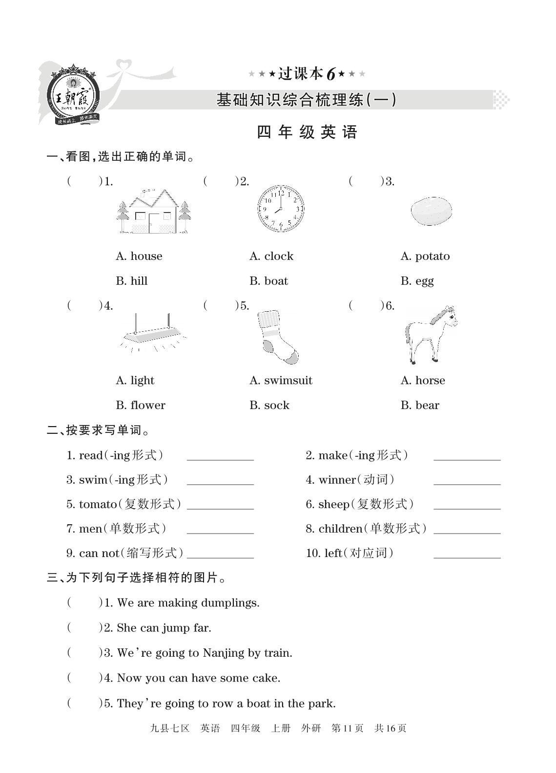 王朝霞期末过课本——基础知识综合梳理练(一)四年级上册英语(外研版)【6】