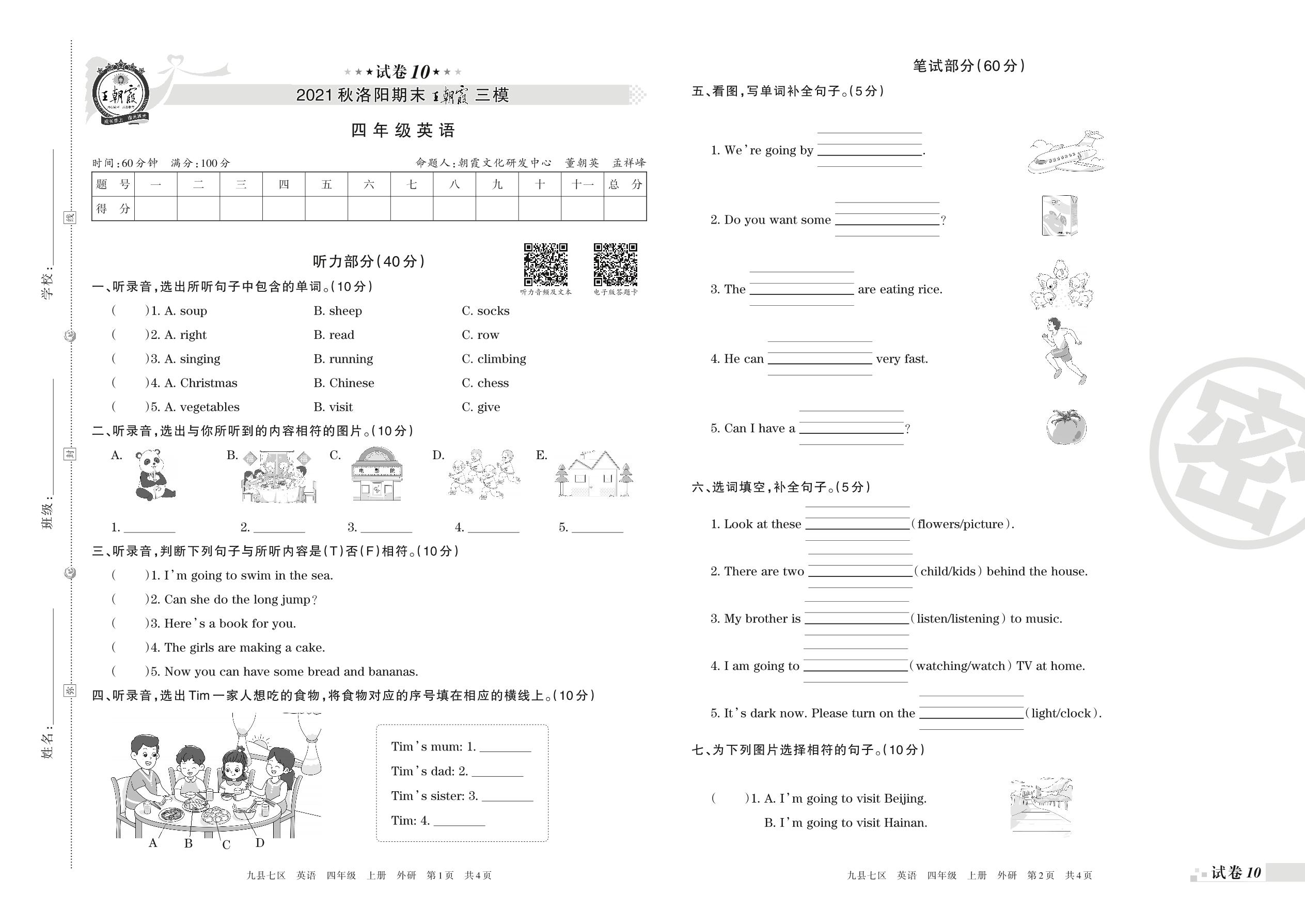 王朝霞期末模拟卷四年级上册英语(外研版)【10】