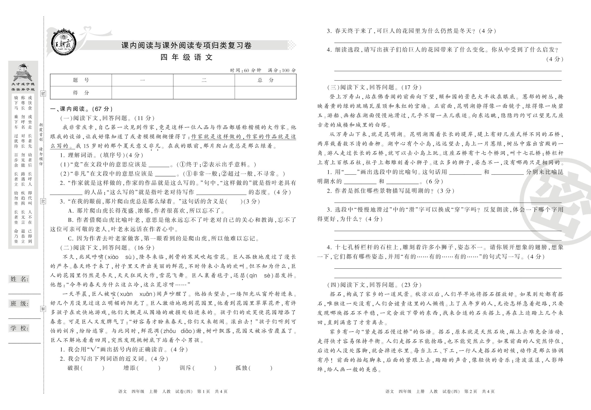 王朝霞期末专项卷四年级上册语文(人教版)_R210801214152【4】