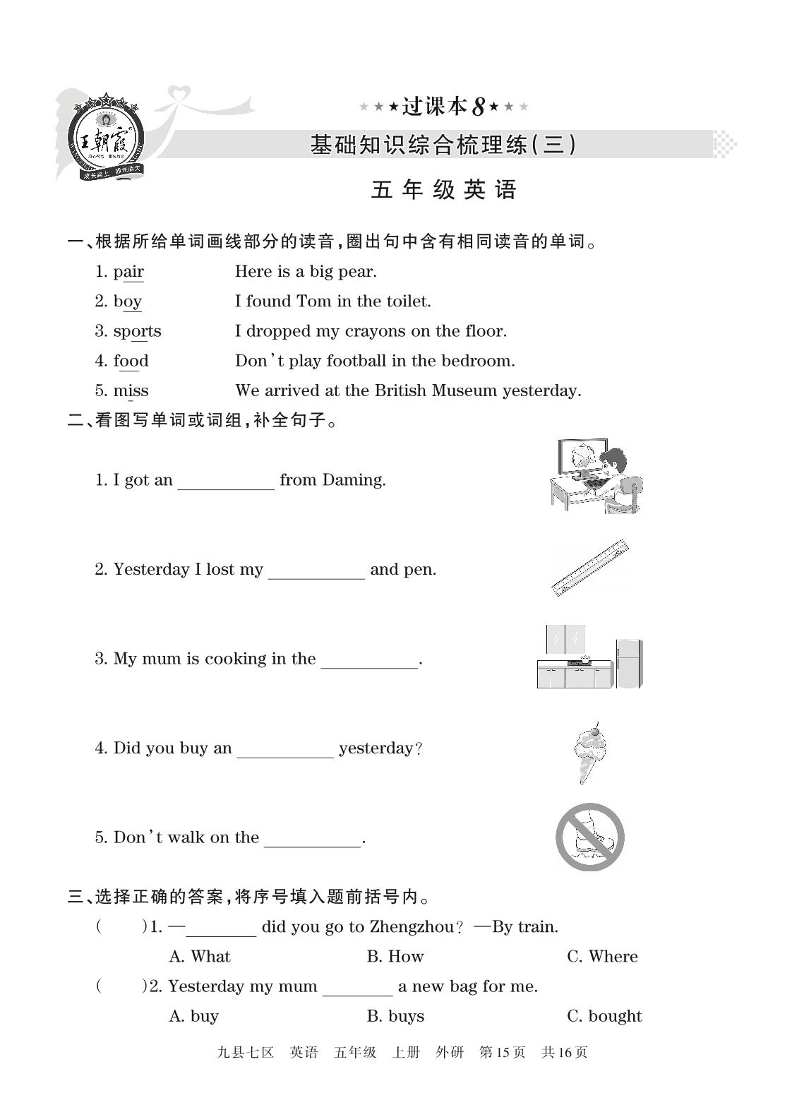 王朝霞期末过课本——基础知识综合梳理练(三)五年级上册英语(外研版)【8】
