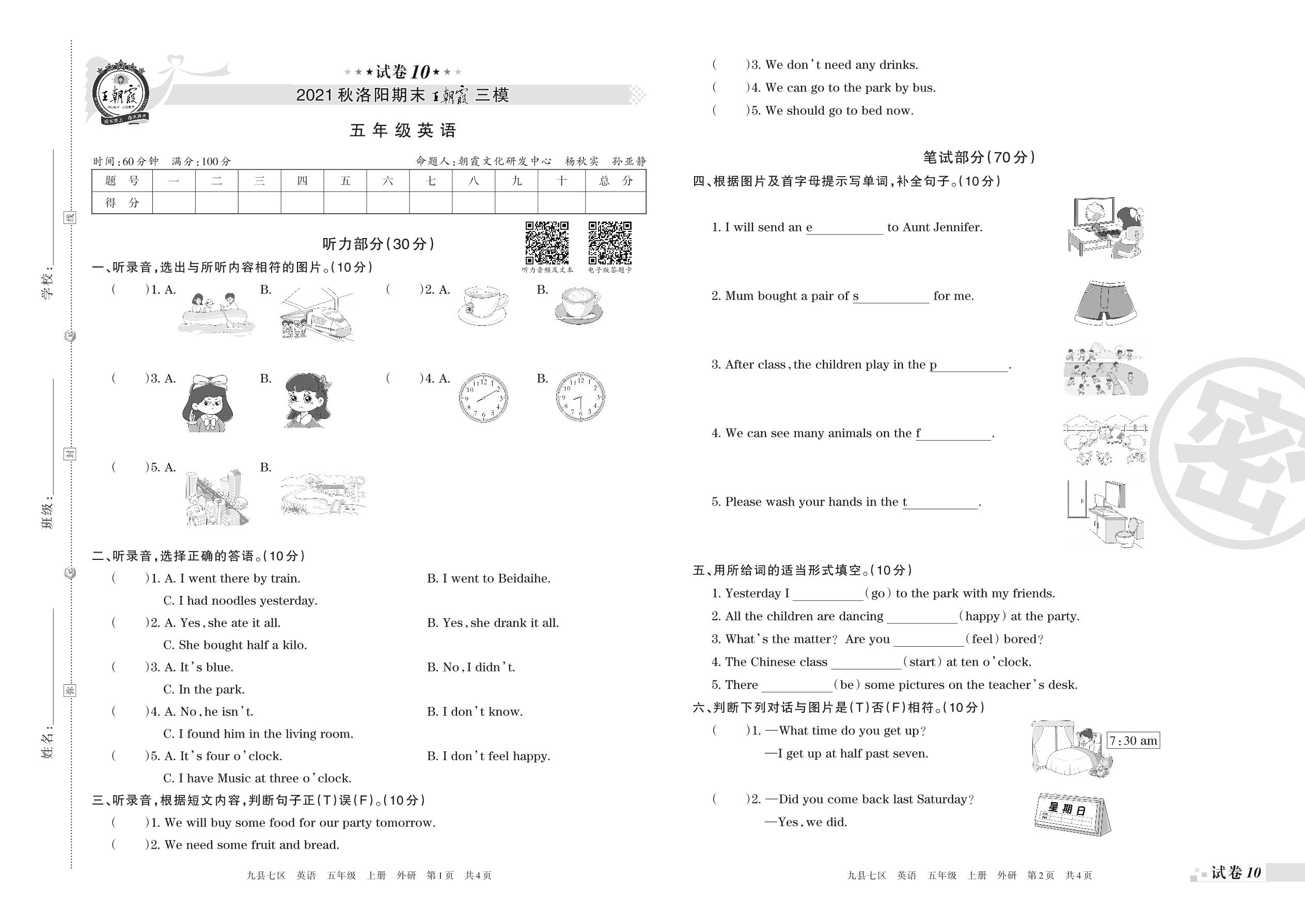 王朝霞期末模拟卷五年级上册英语(外研版)_R211223174158475【10】