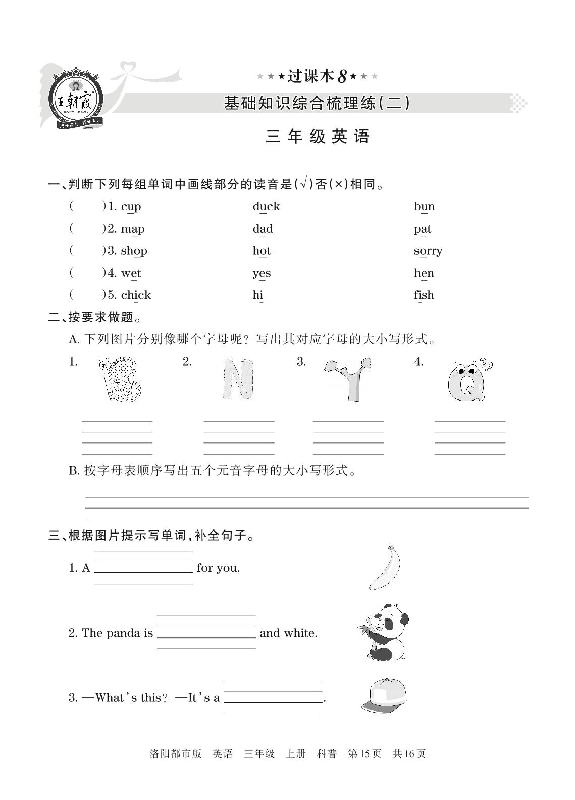 王朝霞期末过课本——基础知识综合梳理练(二)三年级上册英语(科普版)【8】