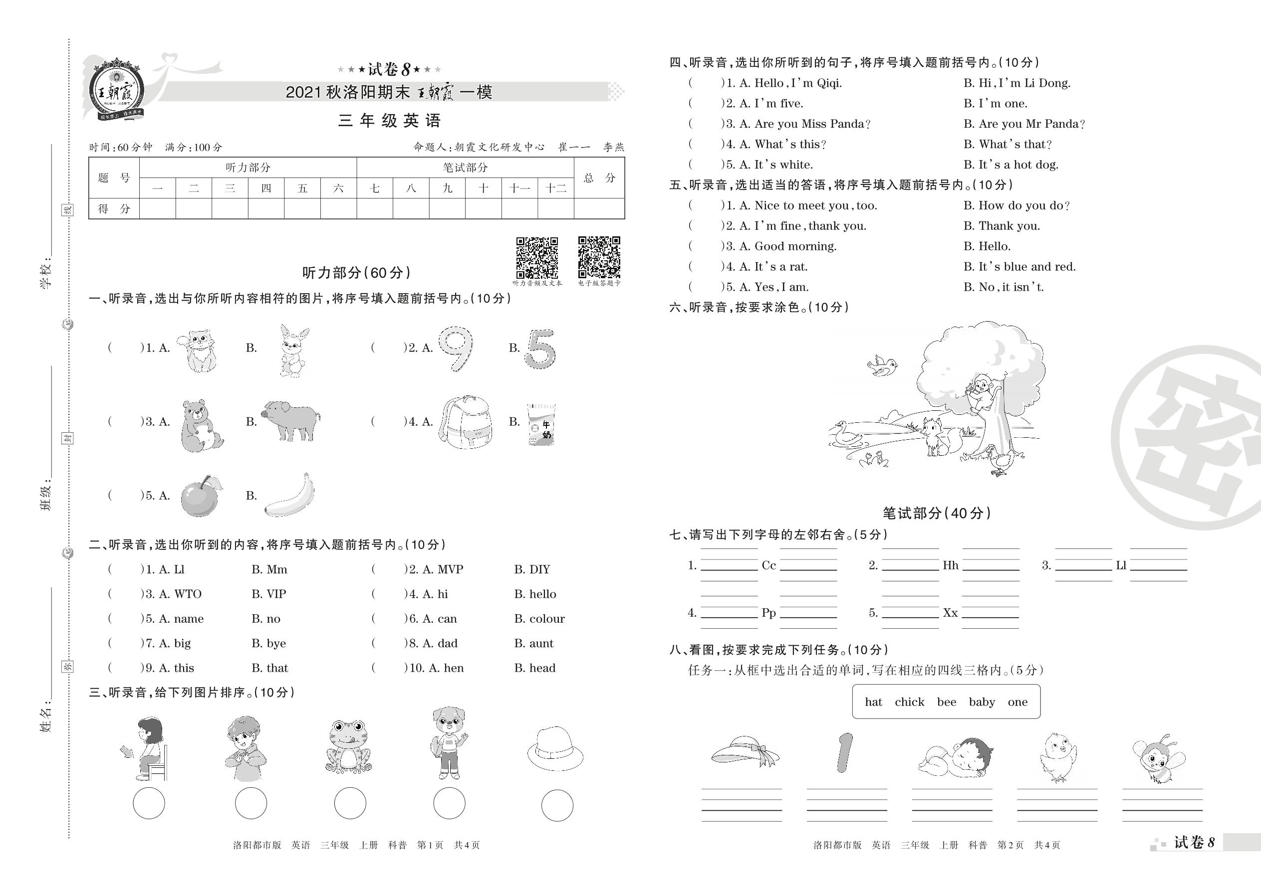 王朝霞期末模拟卷三年级上册英语(科普版)_R211223180421840【8】