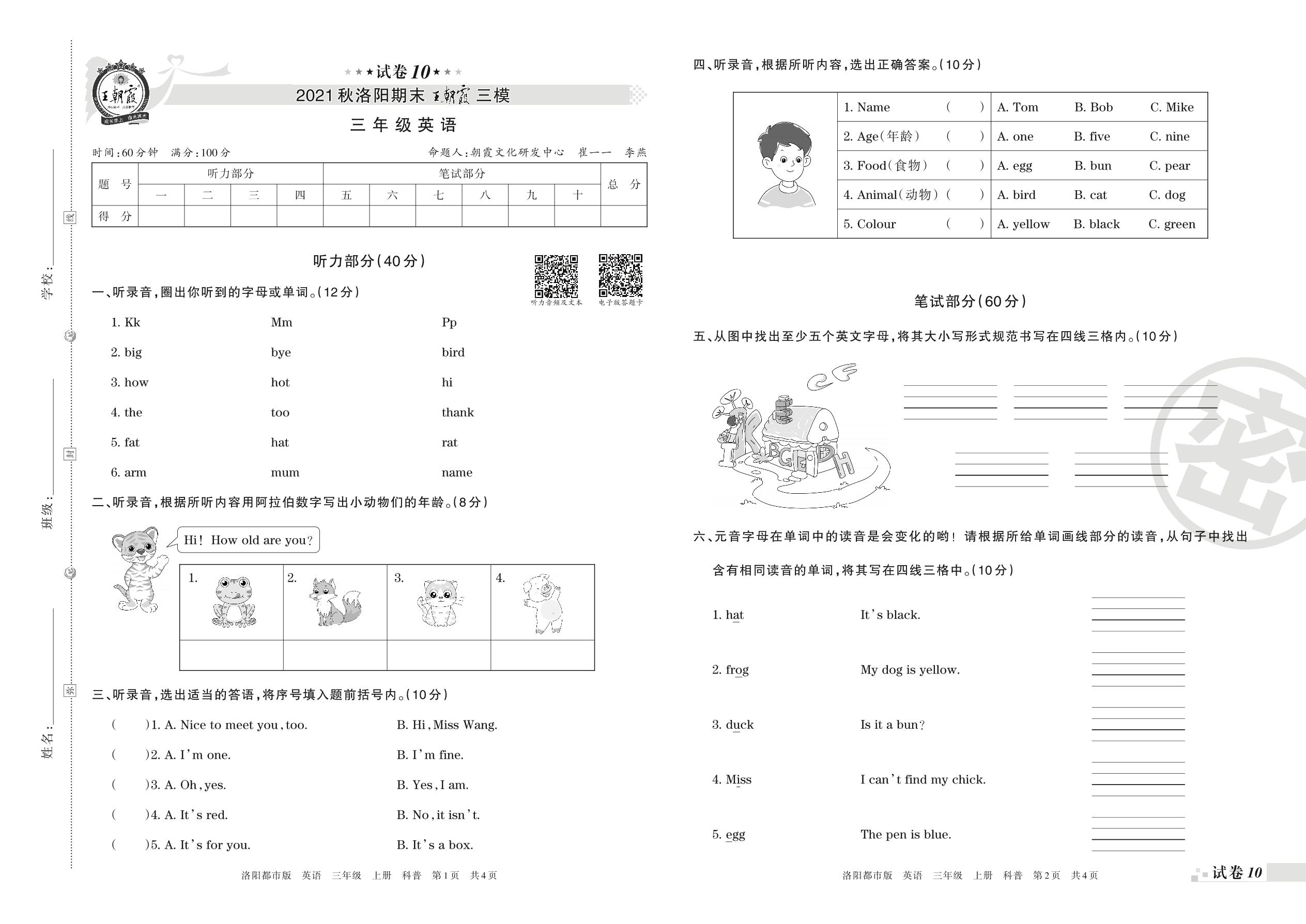 王朝霞期末模拟卷三年级上册英语(科普版)_R211223180422873【10】